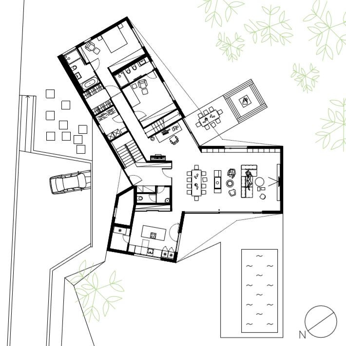 Rodinný dům JJ, půdorys 1NP, JRKVC