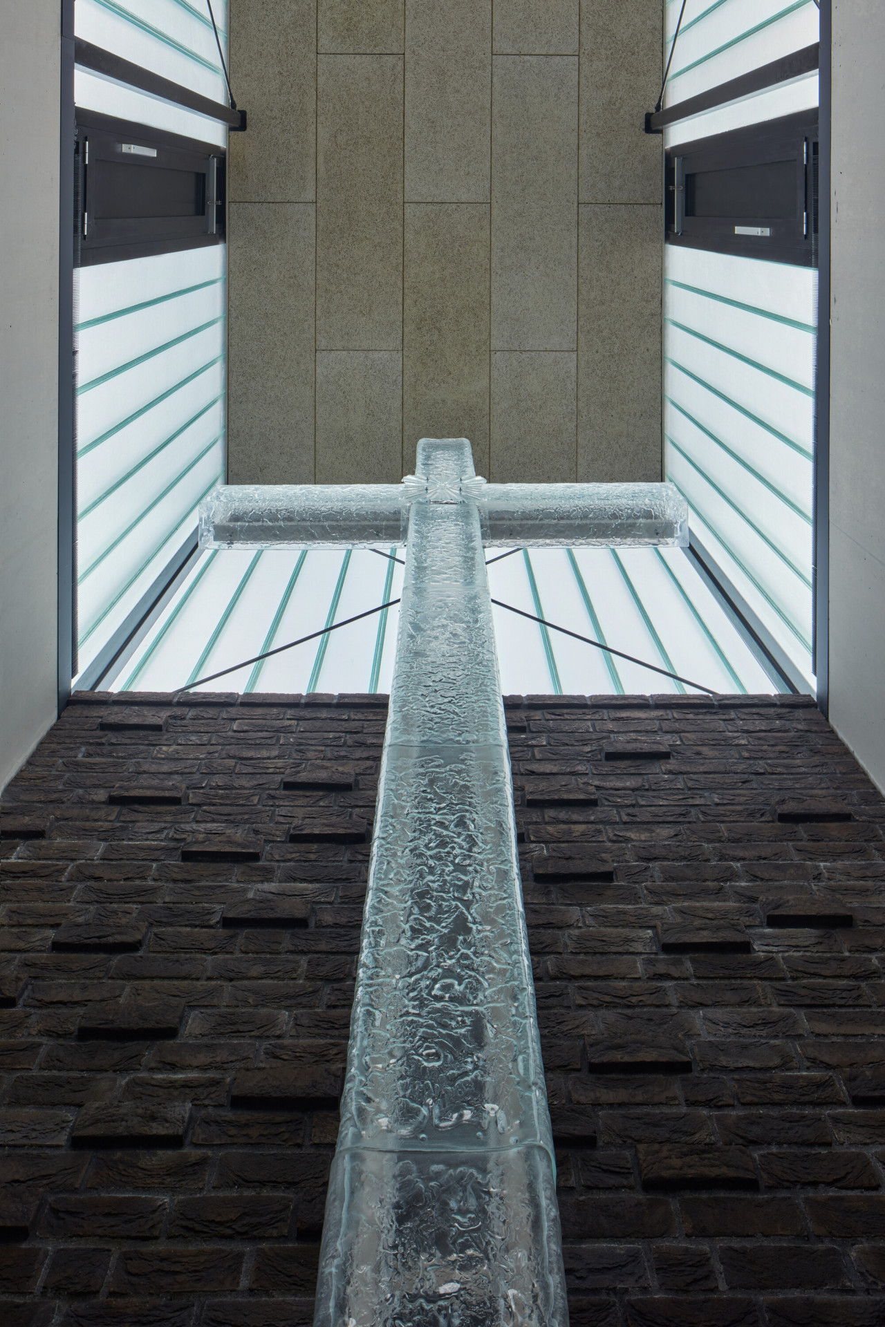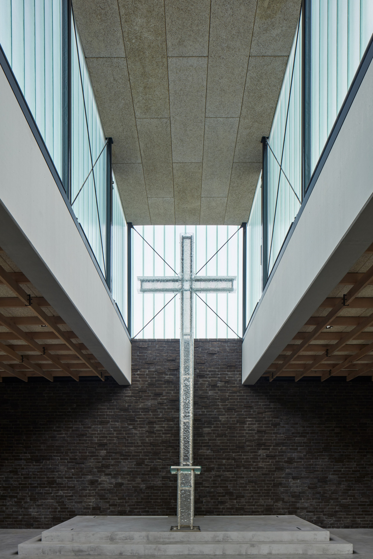 Pro církevní stavbu je zásadní práce s denním světlem. Velký prosklený světlík s ocelovou konstrukcí zároveň vytváří důležitý architektonický motiv celé stavby. „Zkušenost světla a tmy je přirozeným východiskem celého konceptu. Světlík, zdroj bazilikálního osvětlení, je postavený v ose příchodu a tvoří charakteristický prvek vnějšího i vnitřního vnímání objektu. Určuje těžiště, koncentruje a dále rozptyluje světlo, které vytváří atmosféru. Stíny, napětí mezi světlem a tmou graficky podtrhují linie prostoru, jsou symfonií protikladů,“ rozvádí architekti.