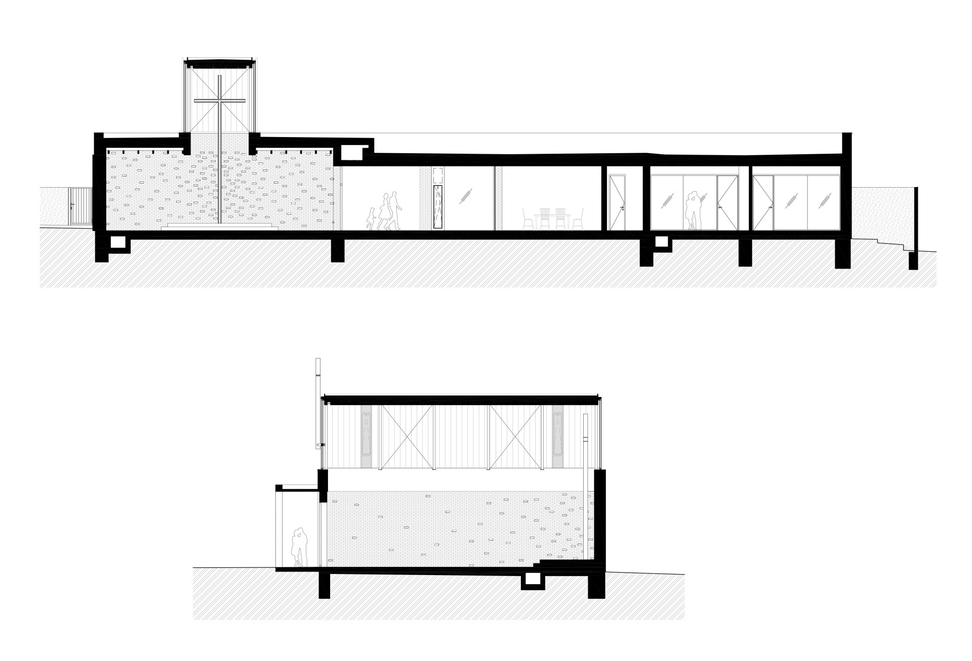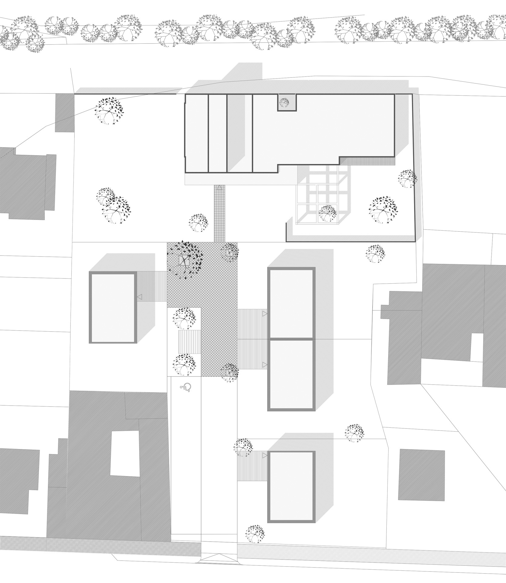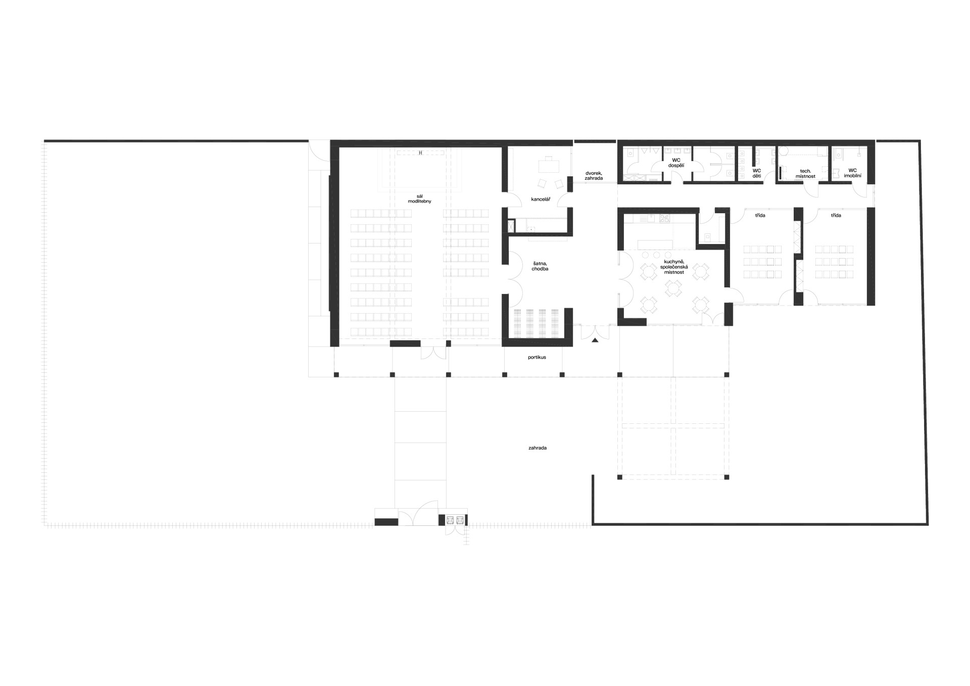 Stavbu umístili architekti na okraj pozemku, aby se uvolnila plocha pozemku pro venkovní aktivity. Komunitní centrum totiž zahrnuje také učebny, malou kavárnu a kancelář. Z toho důvodu autoři pojali návrh jako zahradní pavilon s pergolou nabízející různá zákoutí.