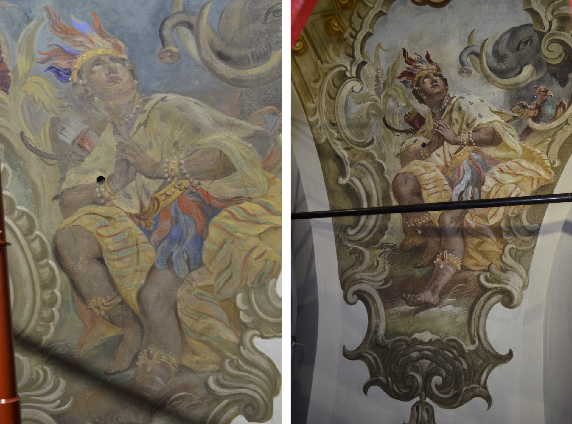 Podle Davida Hrabálka bylo vůbec největší prací originály "objevit". Díky míře dochování Luxových fresek už následná retuš nebyla příliš komplikovaná. Došlo tedy k jejímu sejmutí a ke kompletní restauraci. Obrovský rozdíl v originálu a hrubé přemalby byl podle Jiřího Suchana vidět převážně ve výjevu alegorie Ameriky, která byla přemalována až groteskně, takže po odkryvu byla rehabilitace díla velmi znatelná.