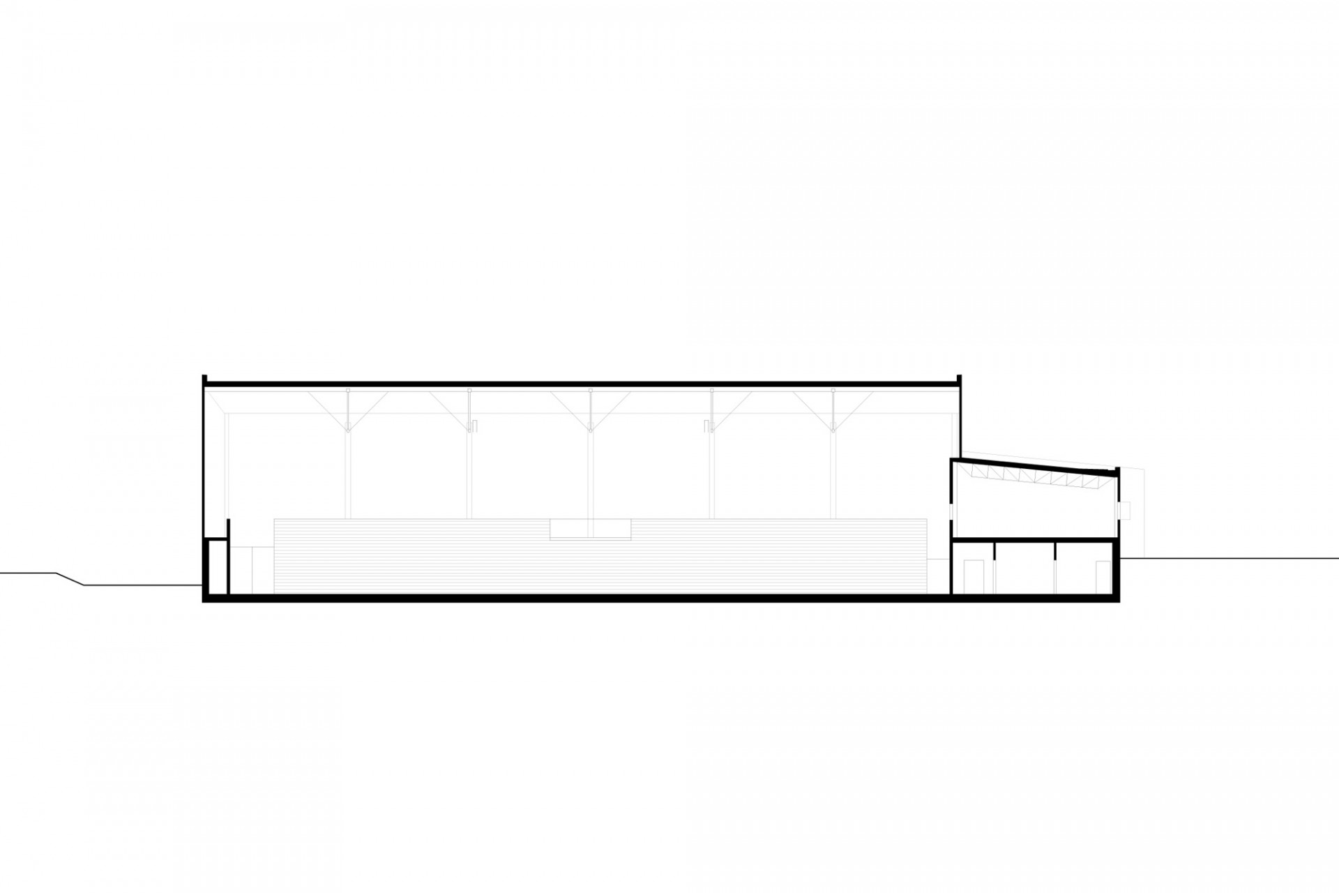 Sportovní hala Kuřim, CUBOID architekti, podélný řez