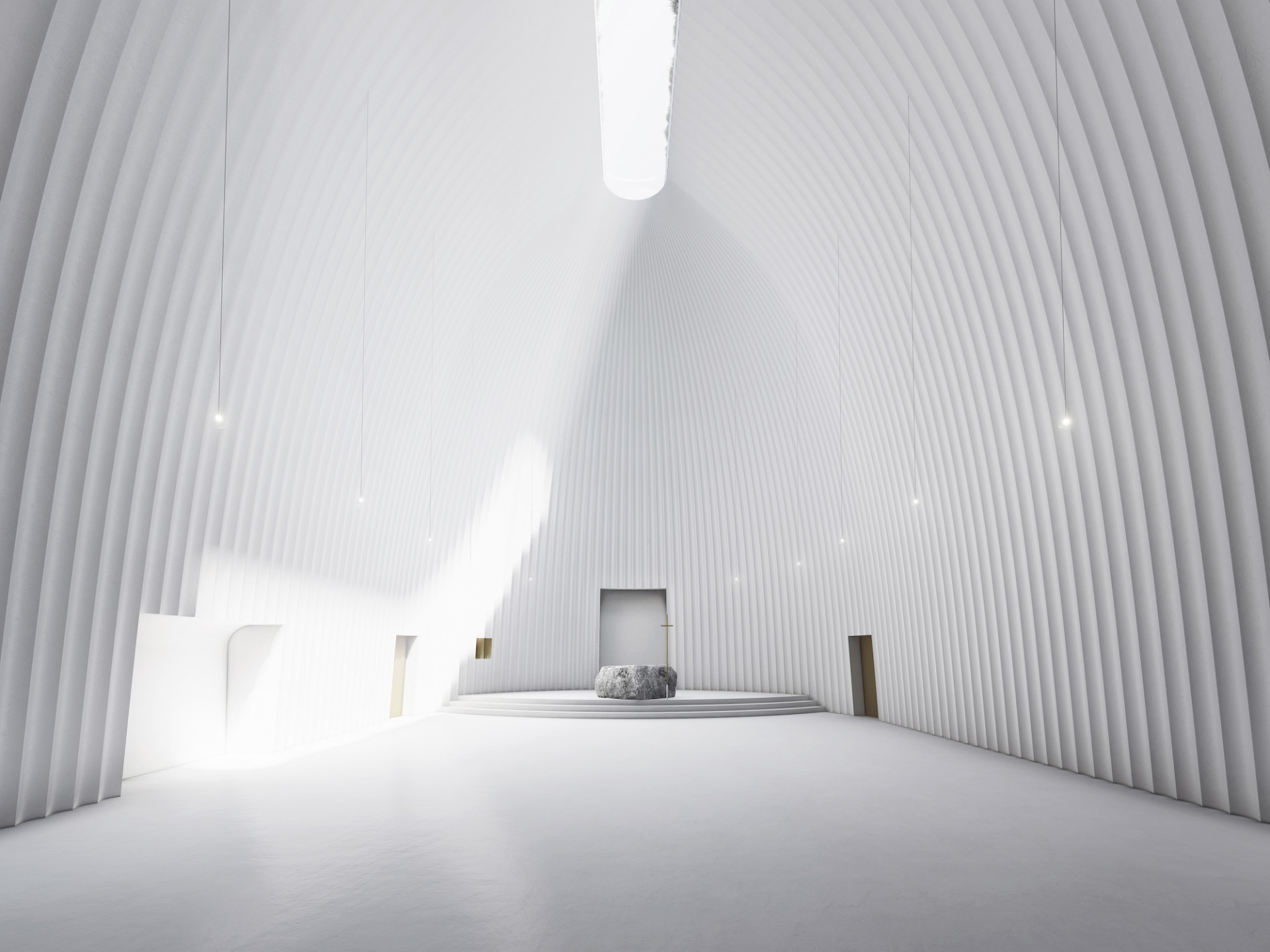 Kostel bude tvořen dvěma soustřednými klenbami a představuje tak návrat ke kořenům církevních staveb. Dvouplášťový systém je možné spatřit například v kostele Santa Maria del Fiore ve Florencii, nebo v katedrále svatého Pavla v Londýně od Christophera Wrena. Do prostor mezi klenbami neratovického kostela architekt zakomponoval zázemí jako učebny, klubovny, toalety a podobně. „Meziprostor mezi dvěma slupkami symbolizuje přechodnou část života a vnitřní prostor pod klenbou s horním osvětlením představuje tichý sakrální prostor oddělený od vnějšího světa,“vysvětluje Zdeněk Fránek. Pod celý objekt pak umístil společenskou místnost.