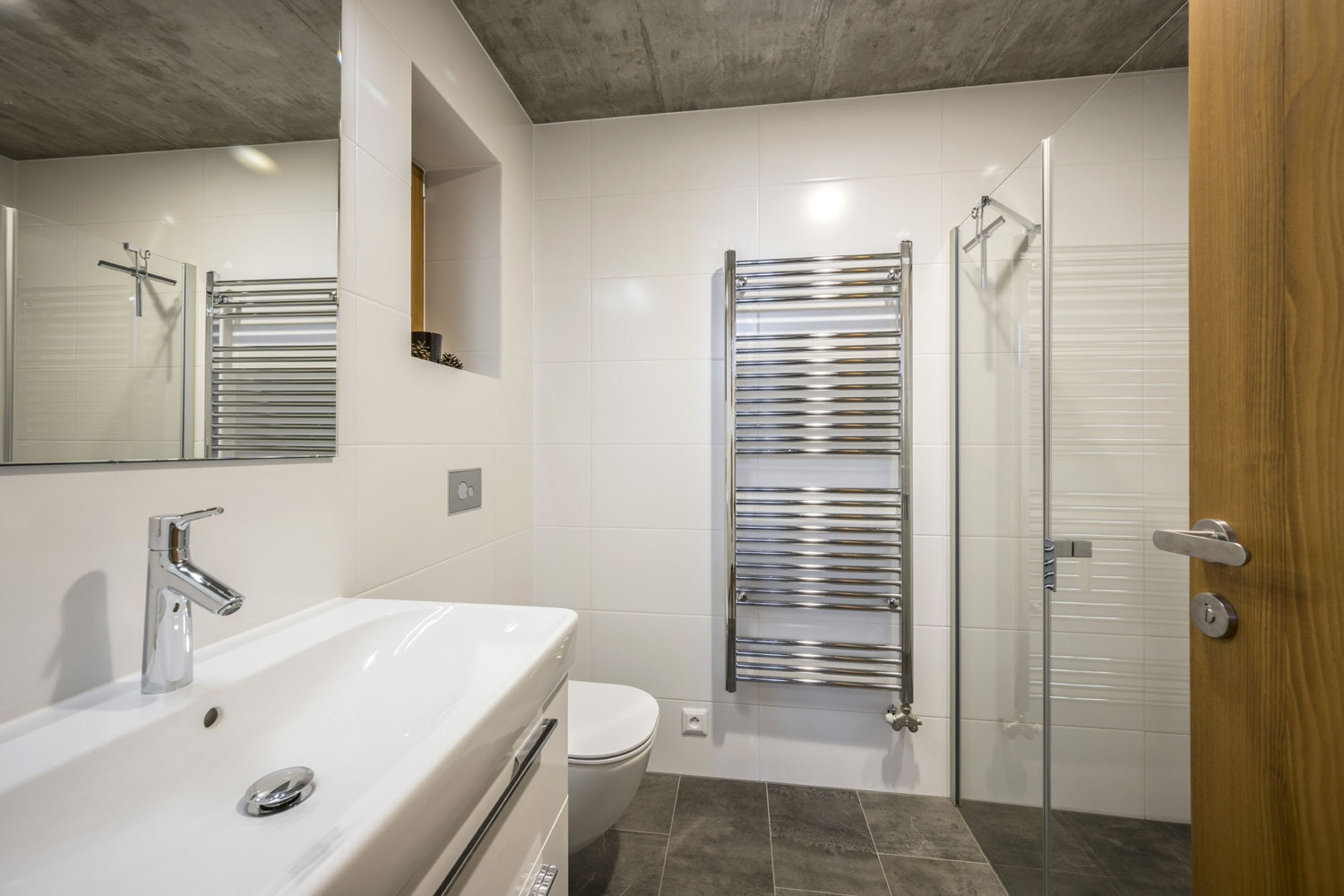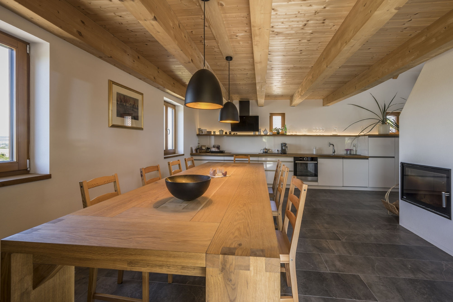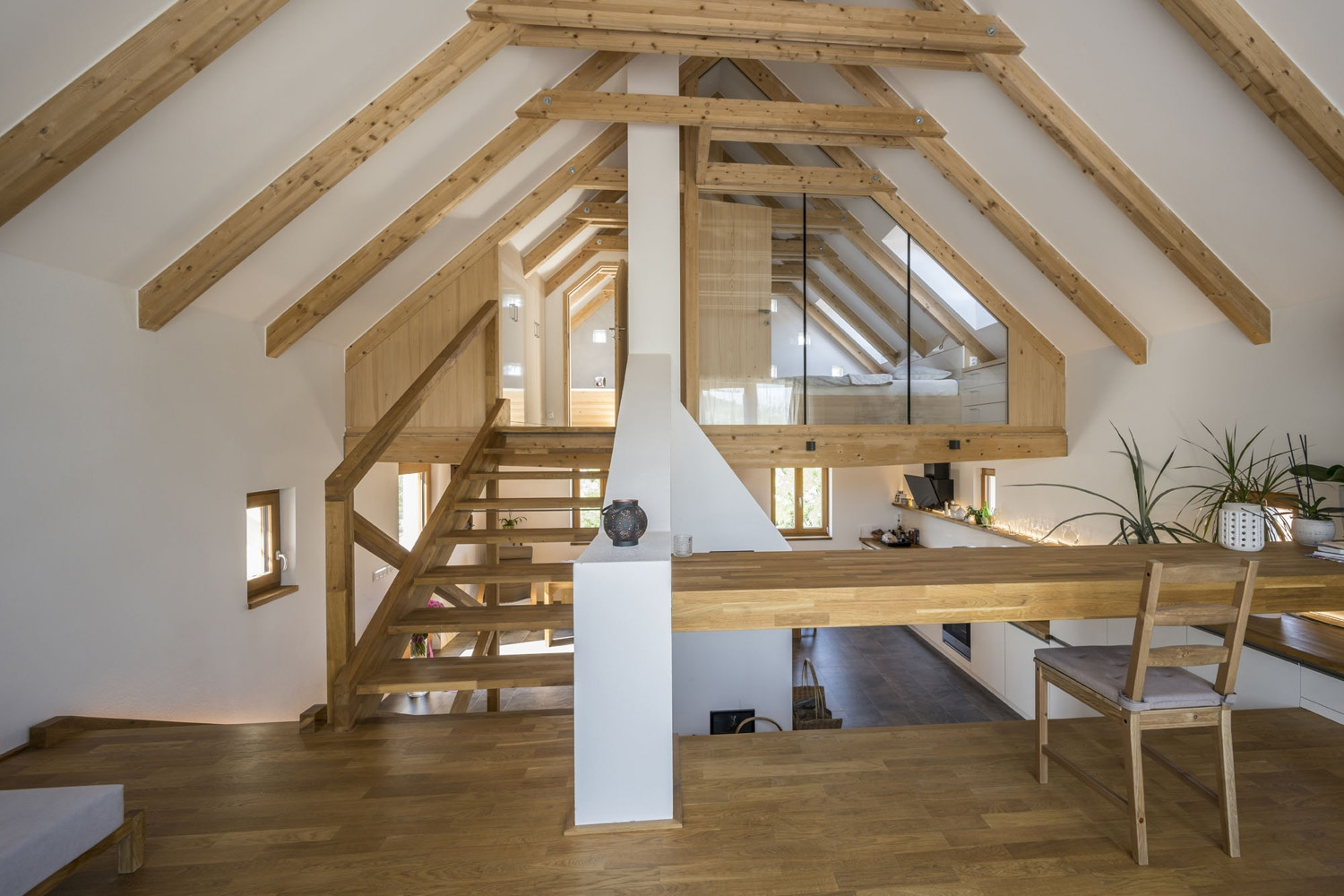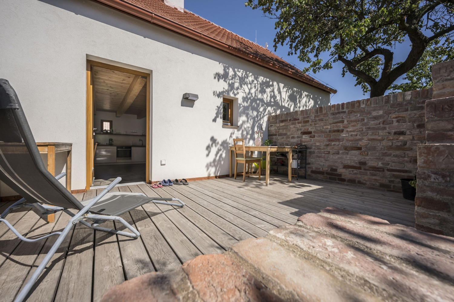 Součástí celkového konceptu jsou i zakázkové řemeslné práce dveří z masivního dubu a kování. Podle návrhu architekta vznikl i minimalistický a funkčně promyšlený nábytek v kombinaci dubového dřeva a laminovaných desek. Pojem „neorustikální“ tak dostává komplexní význam – představuje kombinaci tradičních materiálů, řemeslné práce, volnou citaci venkovského domu a současně moderní bydlení s citem pro funkčnost a design. „Svým způsobem se tu spojují tradice i v širším slova smyslu – jediné, co tu po původním německém obyvatelstvu zůstalo, když se mí předkové přistěhovali, jsou staré hodiny. Jsou jediným historickým solitérem v našem domě a jsem rád, že zde našly své důstojné místo,“ dodává Marek Špalek.
