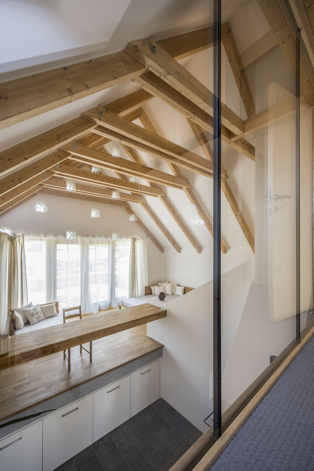 „Ocenili jsme také tvarovatelnost tohoto materiálu – v exterieru je to atypické ostění oken a také luxfery ve fasádě, které tvoří určitý ornament, to Ytong umožní velmi snadno a bez odpadů, stejná situace byla na několika místech v interiéru, “uvádí Tomáš Havlíček.