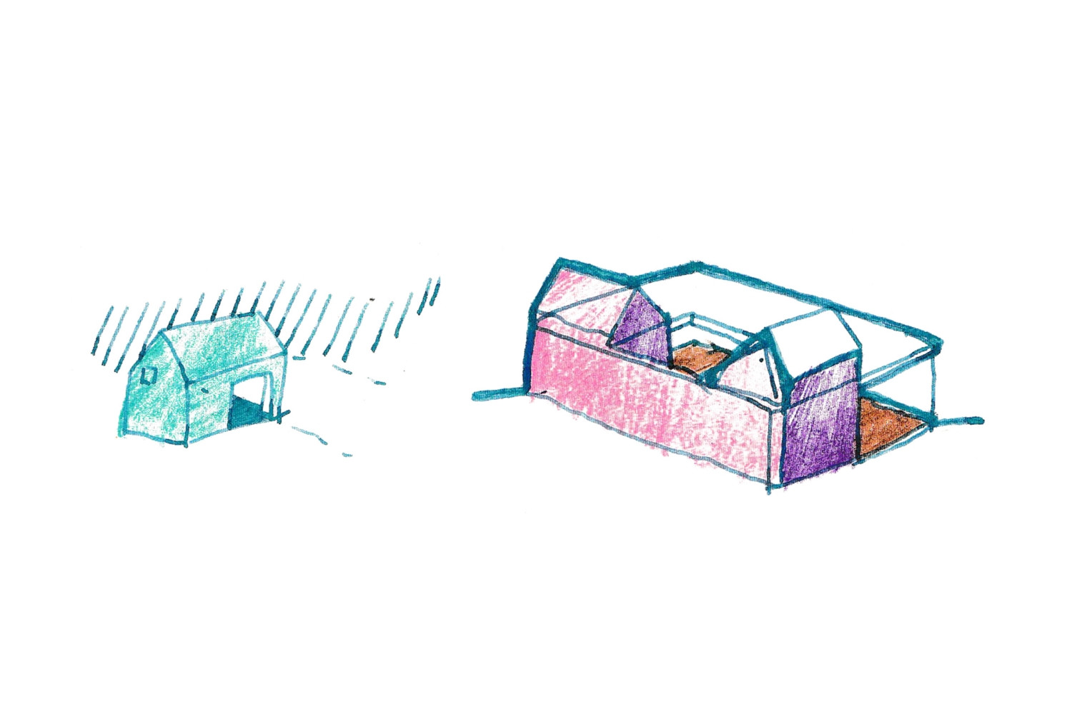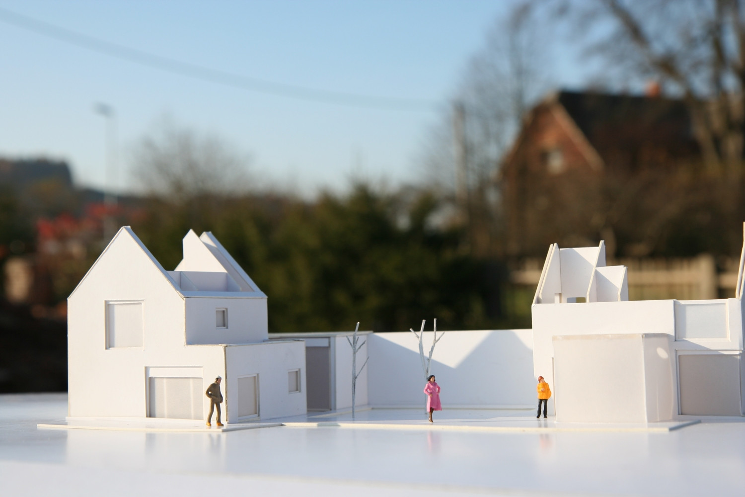 V podkrkonošském městečku navrhlo Studio Raketoplán dva rodinné domy se společnou zahradou