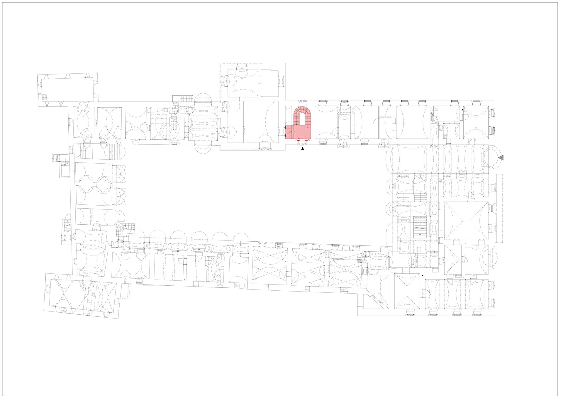 Buňky jsou zde dvě, každá na jiném podalží kaštělu. Jedna je větší, ta pojme až čtyři osoby, menší je určená pro dva. Obě fungují v poměrně vysokém standardu – je do nich zavedená elektřina, dá se zde svítit. Nejsou však vytápěné, spacáky a karimatky proto s sebou. V blízkosti buněk se pak nachází taky sprchy a kuchyňka, je tady vše, co je potřeba k pohodlnému ubytování. Zároveň se lze procházet pustým vnitřkem a vystoupat až do střešního pavilonu.