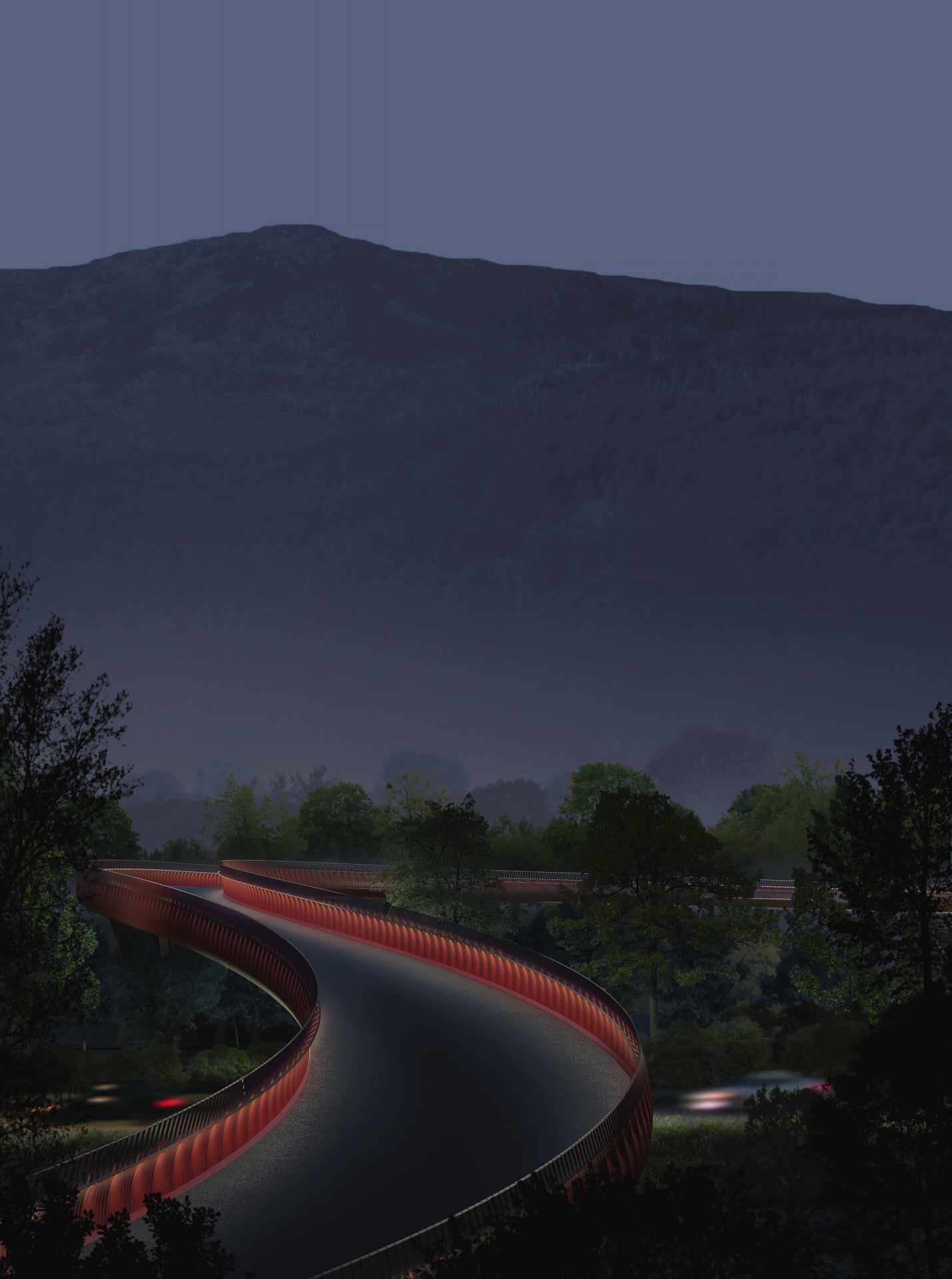 Hlavní ambicí autorského týmu je vytvořit nerušené pěší a cyklistické propojení a zároveň minimalizovat dopady na flóru a faunu parku, které vznikají v průběhu výstavby. Navržený dlouhý zaoblený most se pohodlně zdvihá, aby překlenul požadovanou průjezdní výšku silnice Biala Čerkva. Ve své organické podobě se proplétá zelení parku, vyhýbá se místům s hustou vegetací nebo s cennými stromy, a zároveň křižuje řeku Perlovskou. Konstrukce také zprostředkuje nový zážitek pro přecházející – v nejvyšších částech most plyne mezi korunami stromů, čímž nabízí jedinečný pohled nejen na park, ale také nádherný výhled na horu Vitoša v blízkosti města Sofie. Mostovka má proměnlivou šířku a poskytuje prostory, kde se lidé mohou také zastavit, posedět a užít si tyto výhledy.