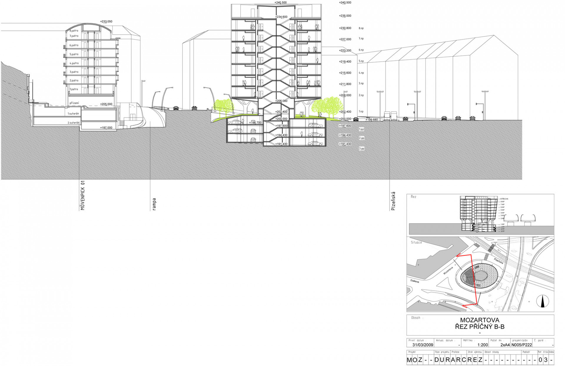 Jasnou snahou architektů bylo objemovým i tvarovým řešením budovy reagovat na současné centrum Smíchova v místě Zlatého Anděla a plynule tak pokračovat v urbanistické ose počínající již u Emauzského kostela na pravém břehu Vltavy. Čtyřicet metrů vysoká budova tak vizuálně napomáhá překročit most, který čtvrť násilně přerušuje.