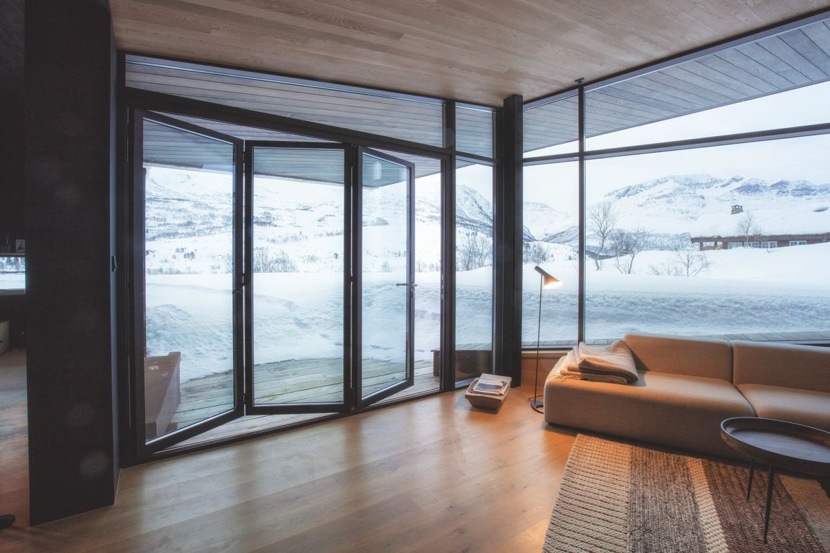 Klima v oblíbené lokalitě Alp Sunnmøre v Norsku se chová opravdu jako na houpačce. Může za to vysoká nadmořská výška až 2000 metrů nad mořem i blízkost fjordů. Z těchto důvodů zde každý rok napadne několik metrů sněhu a v létě naopak teploty atakují třicítky. Stavět v takových podmínkách je velmi náročné – především co se technické stránky projektu týče. Osobní vazby klienta k místu byly však natolik silné, že si se svou rodinou na jednom ze zdejších svahů rozhodl vybudovat soukromé útočiště.