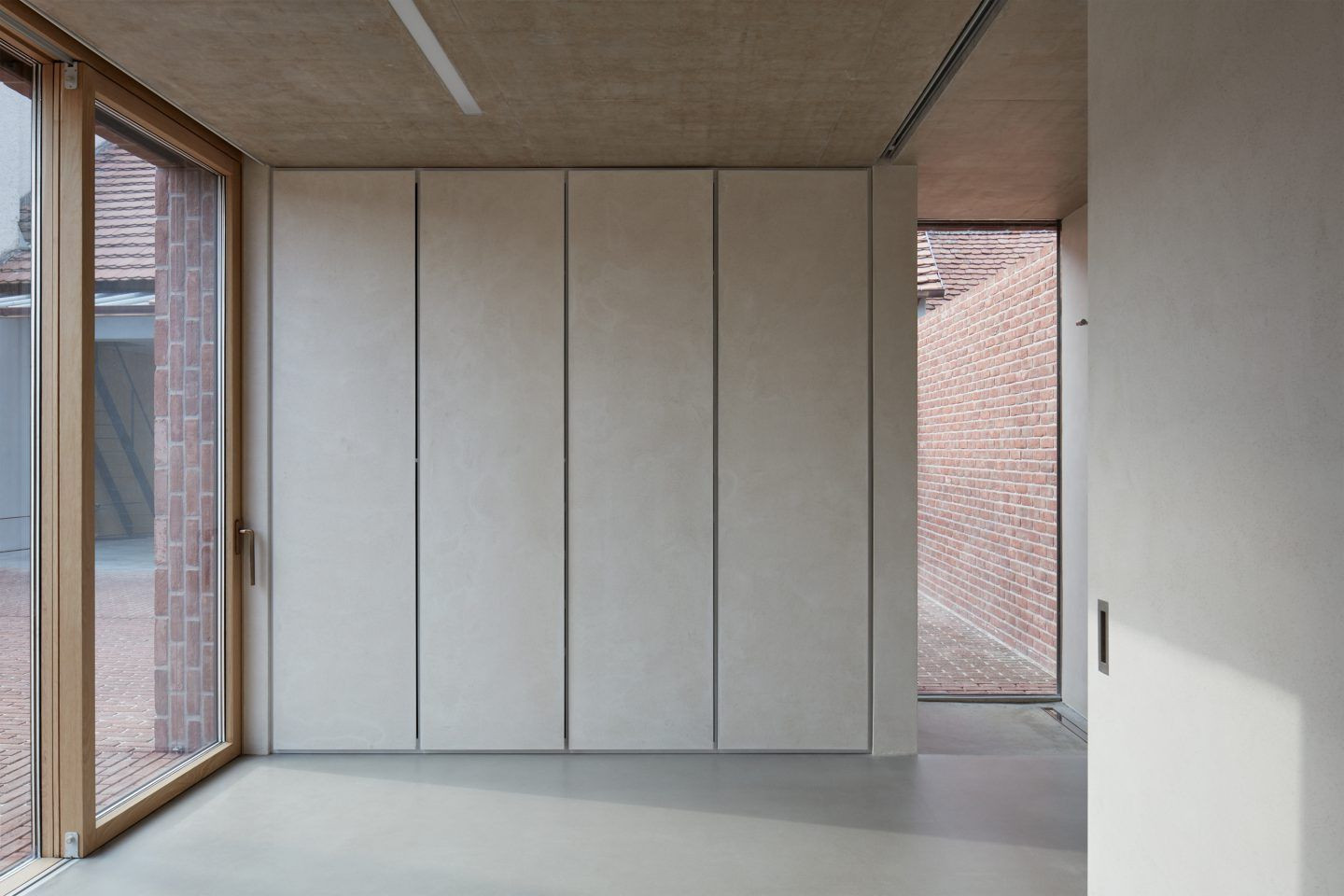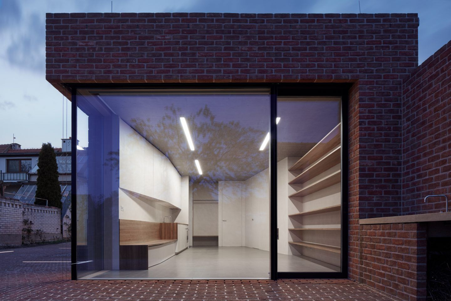 U starých domů na Moravě byly zadní hospodářské budovy často bez omítky. Takto vlastně bezděčně vznikala cihlová "architektura" ve dvorech stavení - příjemná a dlouhodobá. Architekt Jan Proksa se tuto tradici rozhodl respektovat a použít cihly pro novou budovu ve dvoře. Za dům je nyní nominován na Českou cenu za architekturu 2017.
