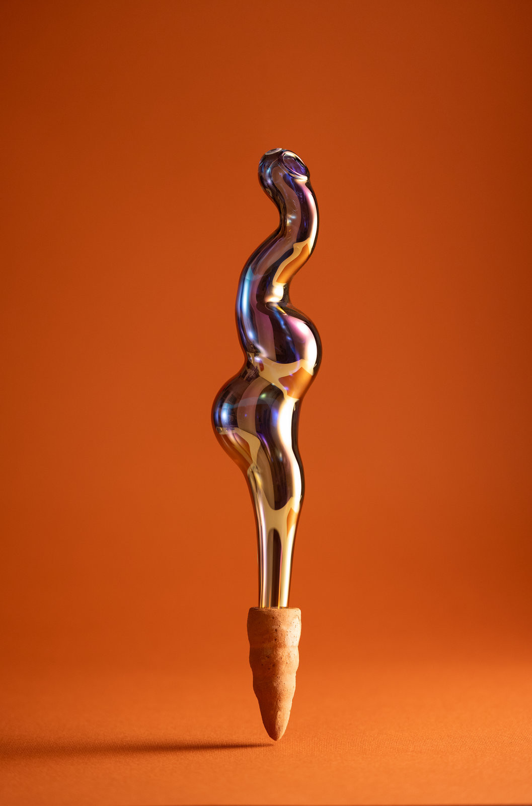 Žížalami, které jsou v každé zdravé půdě, je inspirovaný Wormeec – zavlažovací systém pro pokojové rostliny. Zde jsou ale žížaly ze skla a terakoty. Skleněné je tělo, které může být buď čiré nebo pokovené, terakotový je zapichovací kužel, který přirozeně propouští pomalu vodu v takové míře, jakou si rostlina žádá.