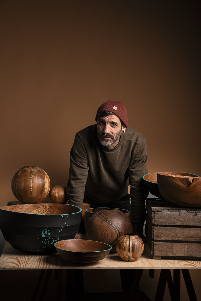 Dřevo pak obrábí na soustruhu, nejraději rovnou v čerstvém stavu. „Jak pak dřevo postupně schne, přirozeně se smršťuje a kroutí – a celý tento proces mi připadá fascinující. Změny dávají každému kusu dřeva jedinečný tvar a charakter,“ říká. Nepravidelné tvary pak dál ručně dotváří za pomoci kartáčování či metodou ebonizace, což je natírání dubového dřeva octem, v němž se máčelo železo – následkem toho dřevo zčerná. Výsledkem jsou mísy s charakterem a příběhem, které vznikly jen proto, že se pokácený strom potkal s milovníkem soustružení.