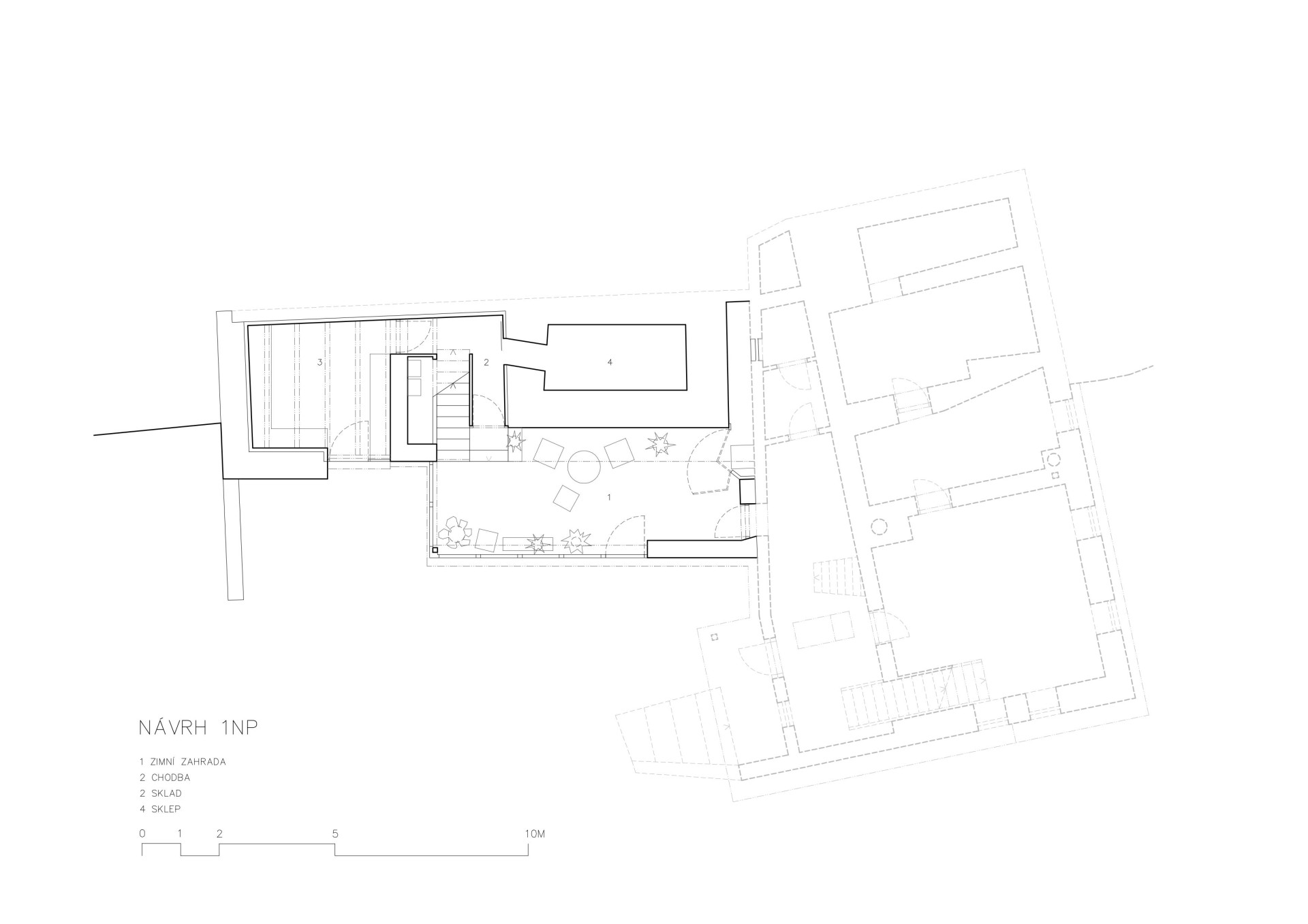 Architekti se rozhodli přístavbu postavit nad prastarý klenutý sklep. Nad ním vzniklo útočiště pro mladší generaci, ale nejen to. Přirodovědci vlastní nesčetně pokojových rostlin, kterým se v nové přístavbě také nesmírně daří.