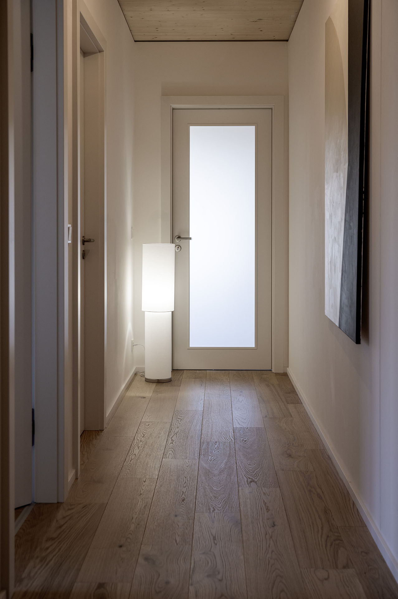 Skladba podlahy začíná dřevěnou nosnou deskou pokrytou separační fólií, na kterou byl nanesen 60mm suchý zásyp. Následuje 30 mm kročejové izolace z minerální vaty a opět vrstva separační fólie. Na ni byla položena systémová deska Varionova, do které byly zafixovány trubky RAUTHERM. Deska byla následně zalita cementovým potěrem. Ke zlepšení útlumu kročejového hluku pod nášlapnou vrstvou slouží izolační vrstva z odlehčeného pěnového polyethylenu (mirelon). Finální vrstvu podlahové skladby tvoří plovoucí dřevěná podlaha. Jednotlivé topné okruhy jsou svedeny do nerezových rozdělovačů REHAU. Systém je nízkoteplotní využívající výhody celoplošného sálavého vytápění, jež umožnuje mimo jiné ekonomicky vytápět místnosti při teplotě o 1 až 3 °C nižší než tradiční systémy, aniž by došlo ke snížení pocitového komfortu uživatele. Na střechách jsou dále umístěny fotovoltaické panely, které slouží na podporu tepelných čerpadel včetně ohřevu TUV, společného osvětlení a provozu výtahů.
