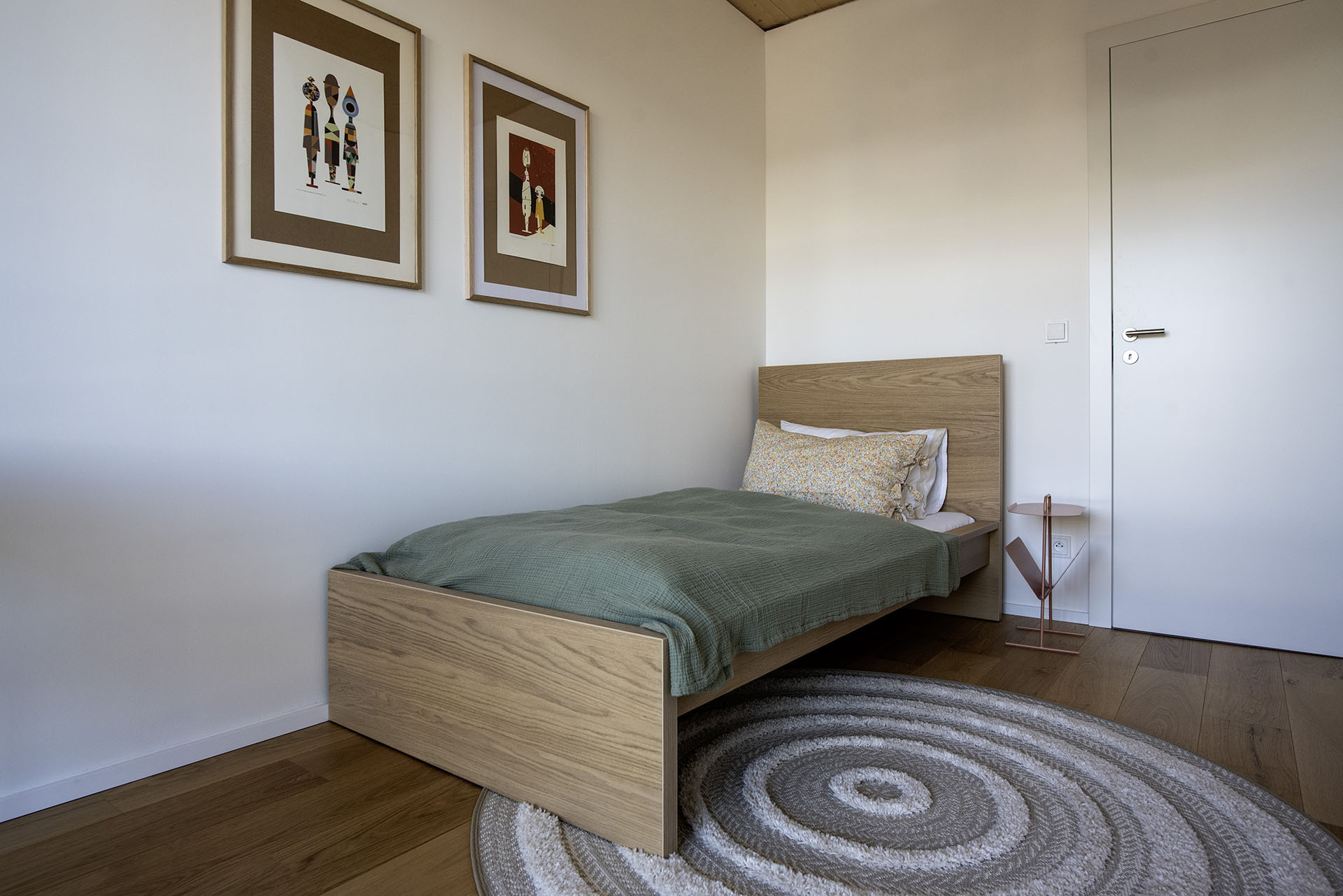 Nosnou konstrukci dřevostavby tvoří panely z křížem vrstveného dřeva CLT (Cross Laminated Timber), které mají potřebnou statitskou únosnost. Od tloušťky 60 mm jsou vzduchotěsné a mají rovněž požadovanou požární odolnost. Jedná se o difúzně otevřený systém dodávaný rakouskou firmou ELK, jež se dlouhodobě osvědčuje při stavbě rodinných domů.