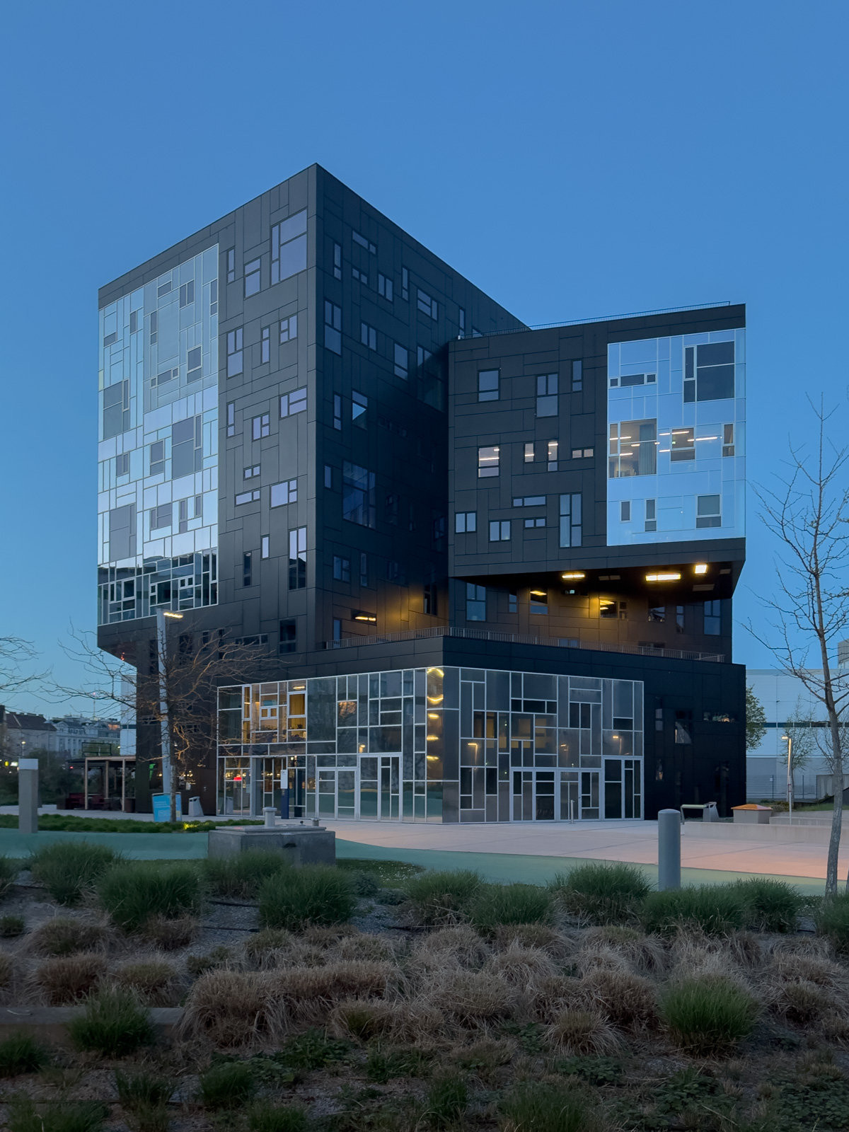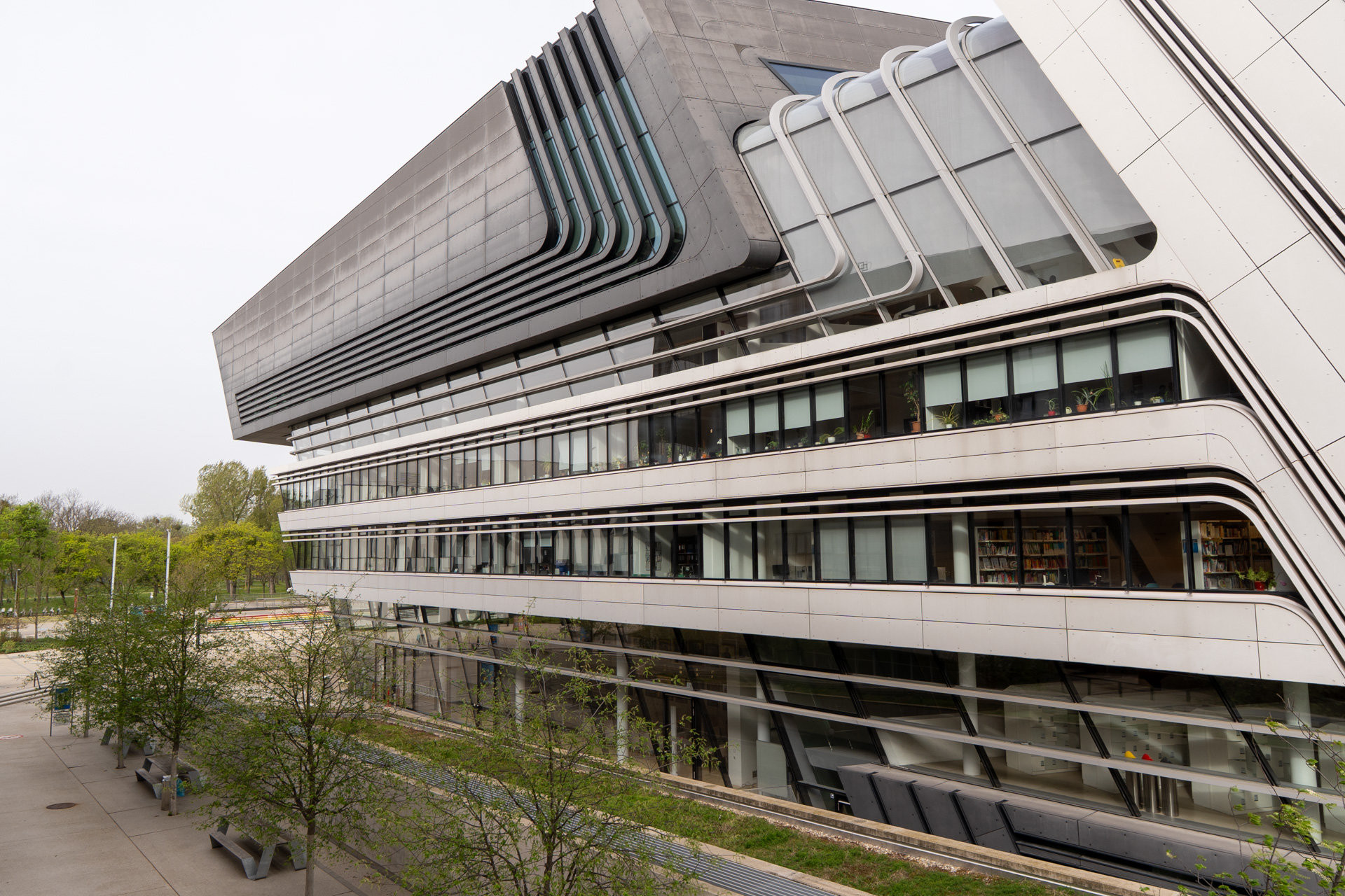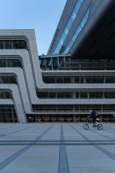 Budova D1 propojená s tzv. Teaching Center ohromí několika schodišti i kompletně kortenovou fasádou (od BUSarchitektur z Vídně). Oproti těmto budovám vidíme v opozici subtilnější ale taktéž výrazný černobílý komplex budov D2 japonského architekta Hitoshi Abeho. V areálu je ale zajímavé architektury opravdu mnoho. Naši pozornost upoutal i solitérní objekt s názvem Executive Academy od španělského studia NO.MAD.