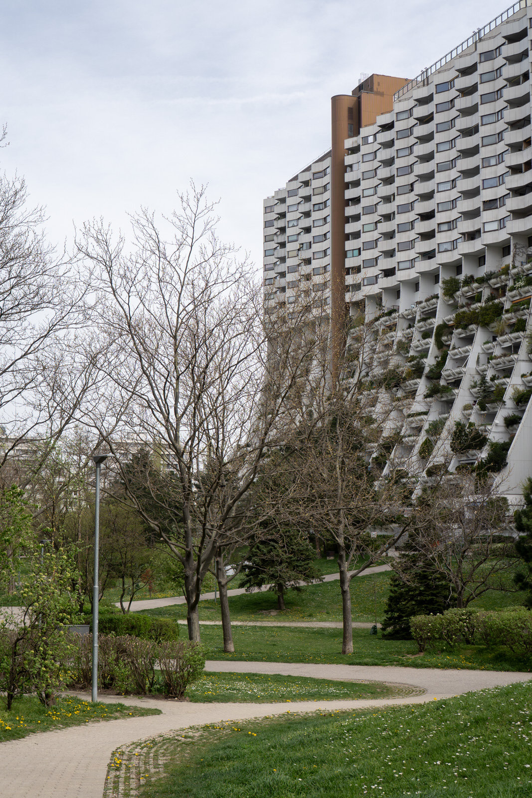 O tomto projektu realizovaném mezi lety 1973 a 1985 toho již bylo napsáno i natočeno dost, nás zaujaly především velkorysé parky mezi budovami i v jejich okolí, které zde zůstaly zachovány i desítky let po dokončení. Zub času samozřejmě pracuje i zde, nicméně komplex od Harryho Glücka vypadá i po letech docela ve formě. Na kvalitu bydlení v těchto domech se samozřejmě názory různí, nicméně je nutno uznat, že se jedná o odvážný pokus o novátorskou architekturu.