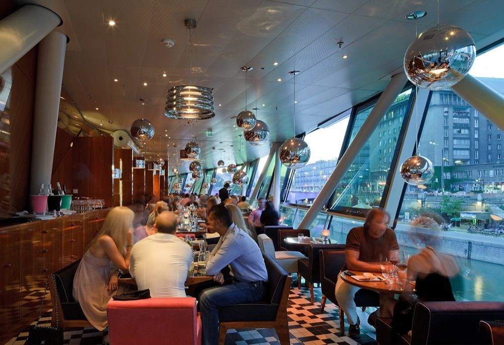 Vzpomínka na Andrea Doria Rafinovaný design a důmyslný management jsou základem pro nekomplikované soužití různých společenských vrstev, jako jsou lidé typu „Jet-set“, pracující v kancelářích, kluboví návštěvníci nebo milovníci nedělních „brunch“. Proslulé benátské opulentní oslavy a tamní slavný Harry´s Bar připomínají po všech stránkách životní styl ve Vídni a její "Motto am Fluss". Proto jsou také toalety vyzdobeny benátskými zrcadly a v protáhlých společenských prostorách jsou stěny obležené dřevem se vsazenými výklenky k sezení, které na uměleckých tapetách ve stylu Piero Fornasetti zobrazují historické Laguna City. Jedna z nejkrásnějších parních lodí kdy postavených, elegantní a osobitá italská loď SS Andrea se potopila 26. července 1956. Stalo se tak po srážce s lodí MS Stockholm nedaleko břehů ostrova Nantucket. Jeden z těchto výklenků je proto věnován replice kabiny 1. třídy lodi Andrea Doria, čímž byla také složena pocta jejímu návrháři Gio Ponti a jeho dílu proslulému svou lehkostí a jemností.