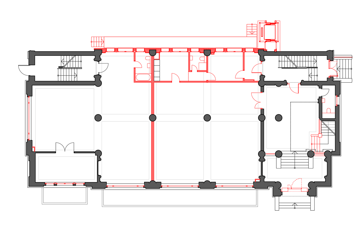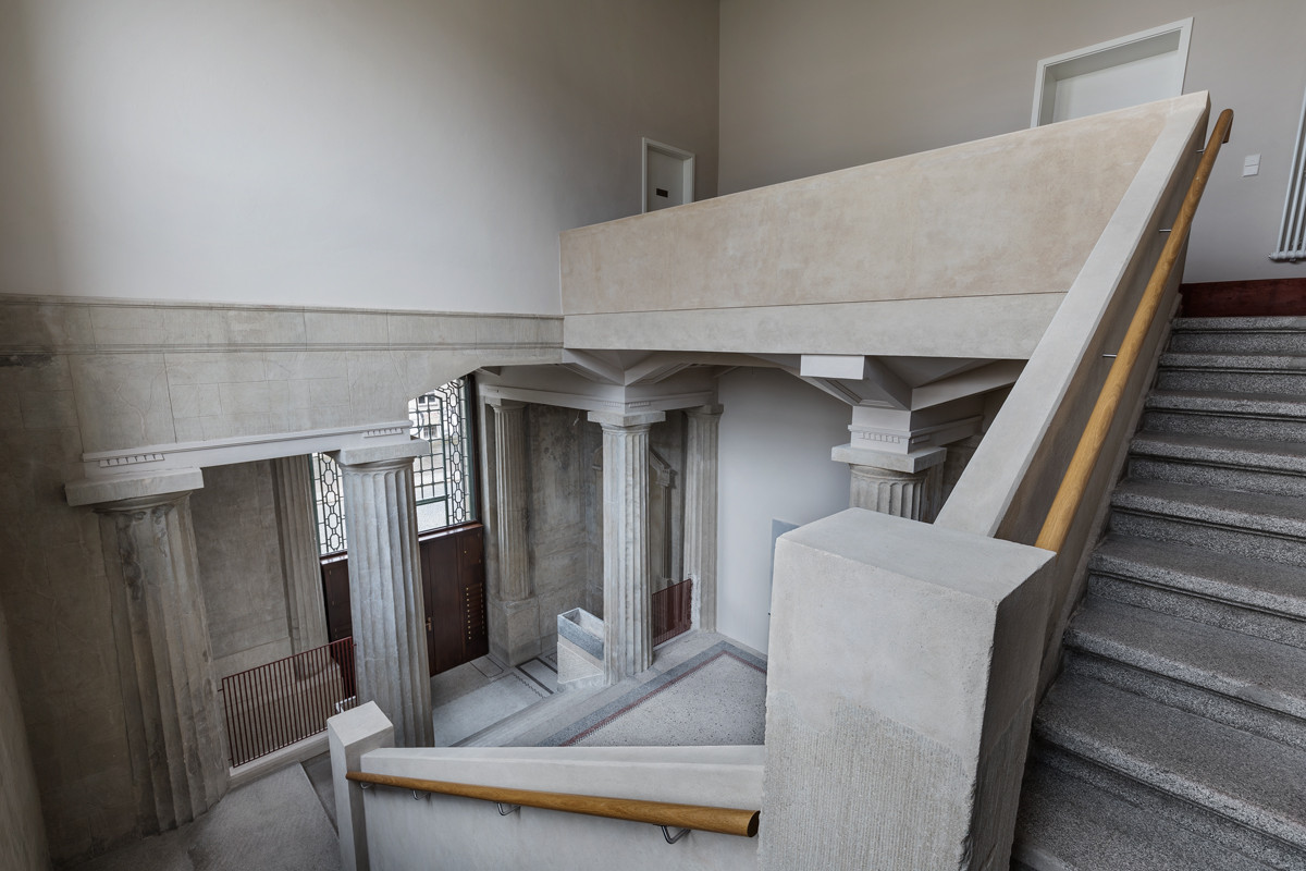 Jedná se o jednu z prvních železobetonových staveb v Berlíně, která spojuje historismu a art deco. Vstupní hale dominuje osm mohutných sloupů po vzoru antiky, kazetový strop nad nimi však už připomíná modernu a Bauhaus. Vše je po rekonstrukci sjednoceno do pískovcové barvy, kterou doplňuje teracová podlaha.