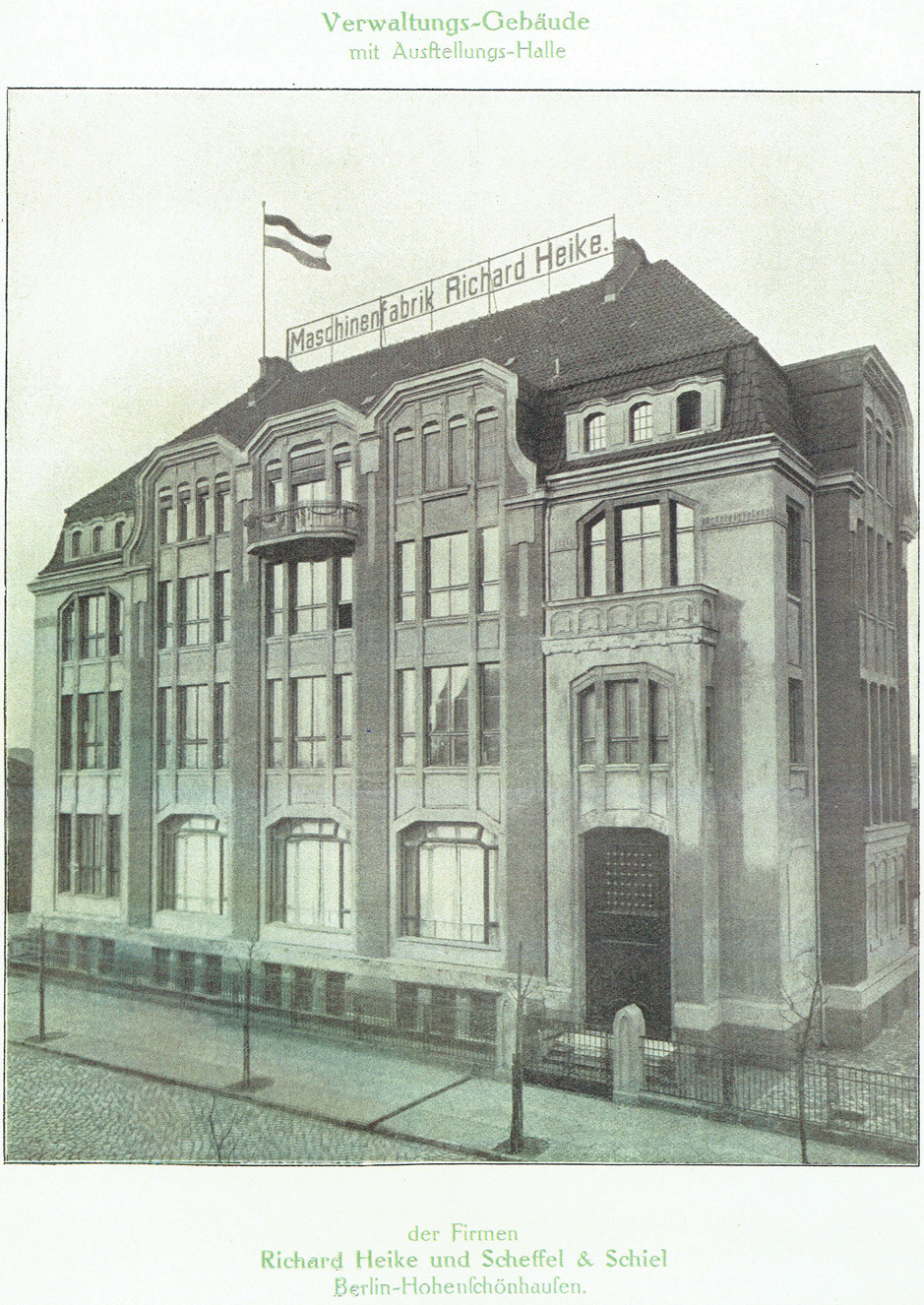 Vila se skládala z haly, kanceláří a bytu výrobce. Důstojnost prostorům dodávala světlá výška, které dosahuje pěti metrů. Velkorysý vestibul v minulosti asi překvapil nejednoho návštěvníka, jelikož budova nestála v luxusní čtvrti, ale poměrně daleko za branami Berlína. Richard Heike v ní vystavoval své stroje na zpracování masa.