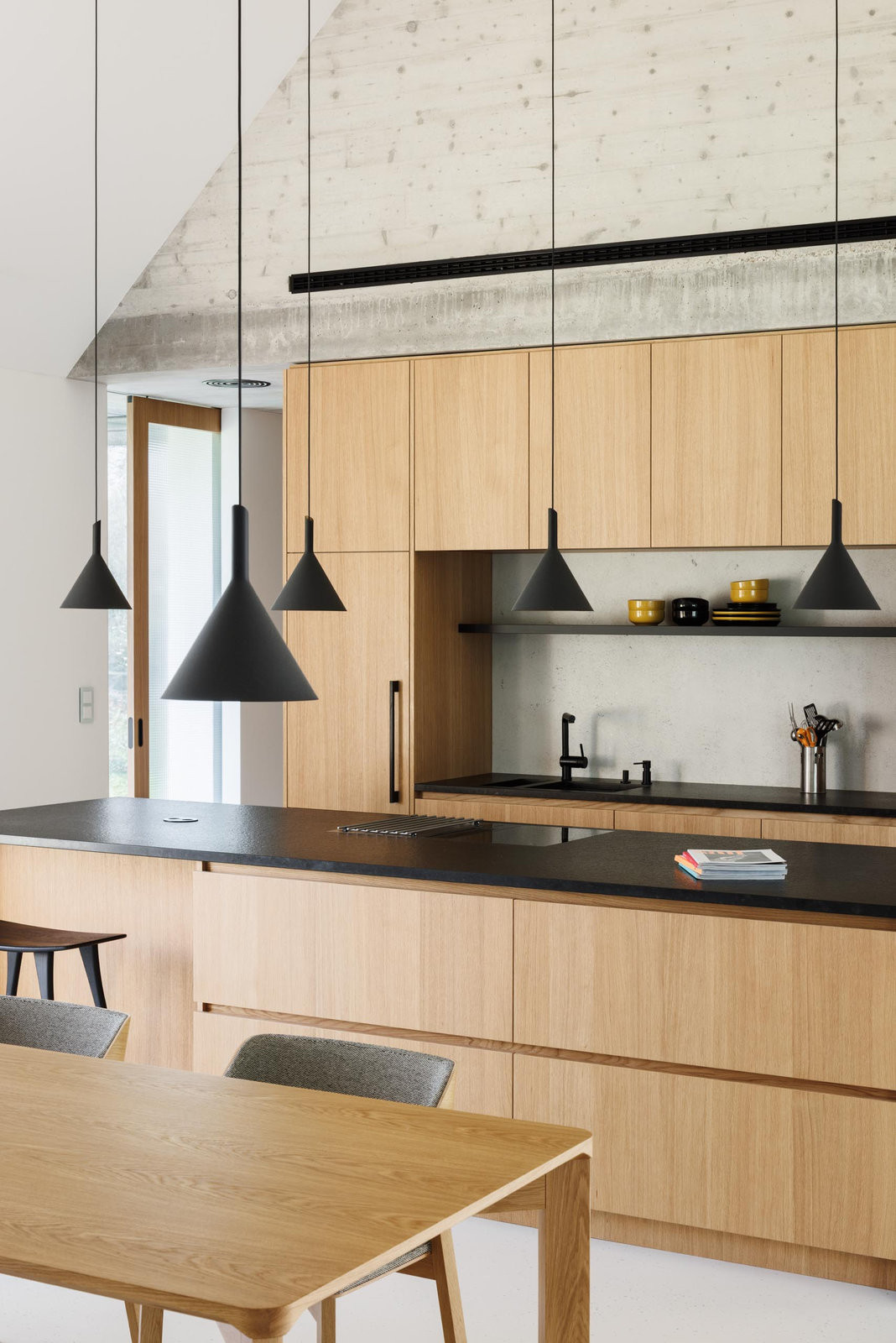 Ve vinařské vesnici Limbach vyrostl dům, kde je mnoho místností, garáž pro dvě auta a samostatné křídlo pro děti. Do okolí je ale zasazený velmi nenápadně.
