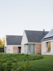 Limbach je vesnice na ideálním místě: dvacet kilometrů od Bratislavy, kolem vinice a příroda podhůří Malých Karpat. Rodina, která tu už delší dobu žila, se rozhodla si tu postavit nový komfortní dům, který by ale do vesnice zapadl. Je to stavba rozlehlá s užitnou plochou přes 300 m². Tvůrcům ze studia ARCHITEKTI mikulaj&mikulajová se ji povedlo rozdělit tak, aby se podobala okolním venkovským domům. Skládá se vlastně ze tří staveb: v první je garáž a dílna, ve druhé obývací pokoj s jídelnou a ložnice rodičů a třetí patří odrůstajícím dětem, které tam mají od rodičů dostatečný distanc.
