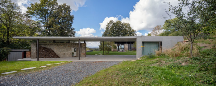 Rodinný dům, kde jednoduchá hmota kontrastuje s použitými materiály, jež svou rozdílností struktur a barev reflektují náplň jednotlivých prostor. Nápadité a funkční řešení.