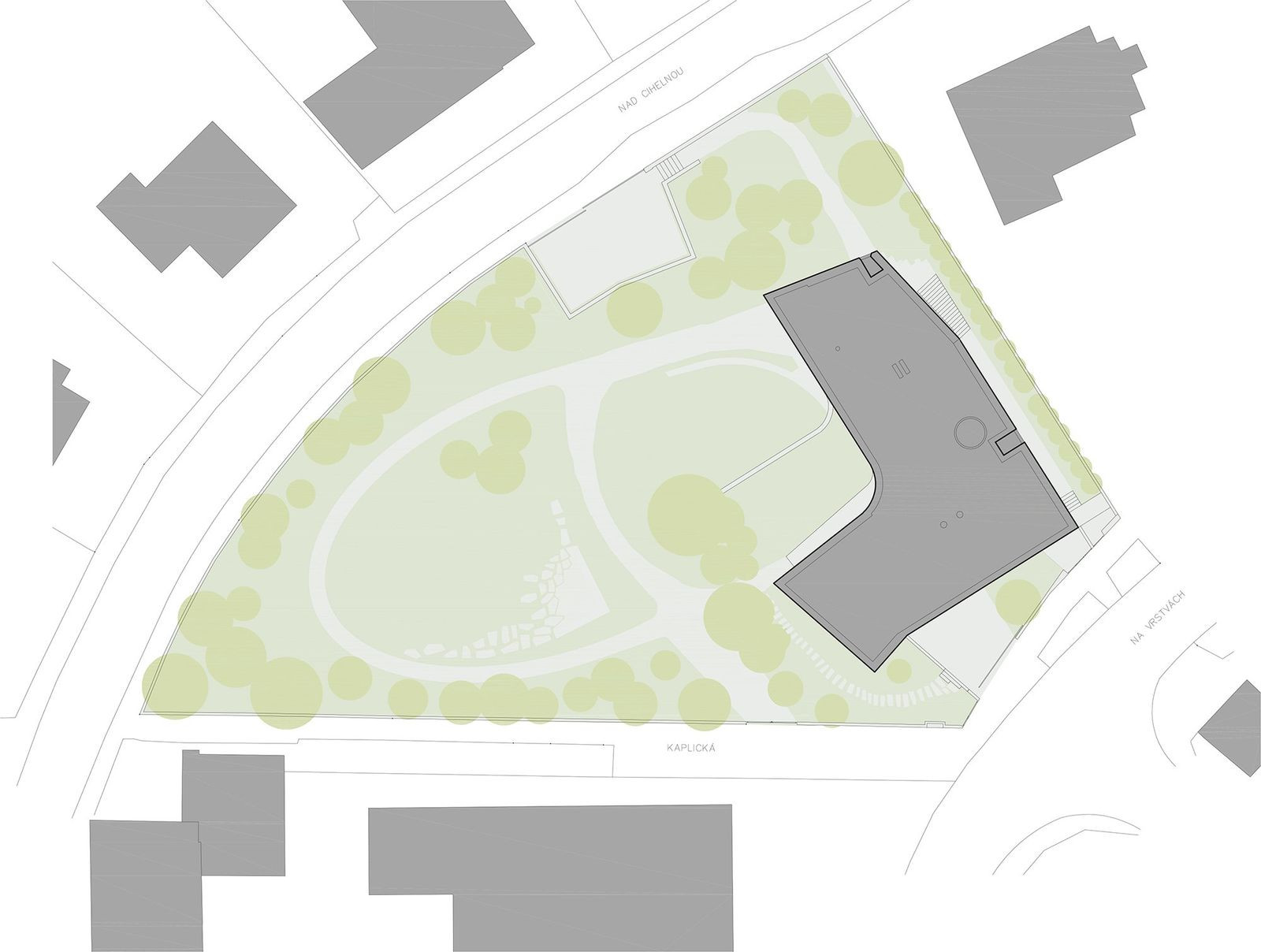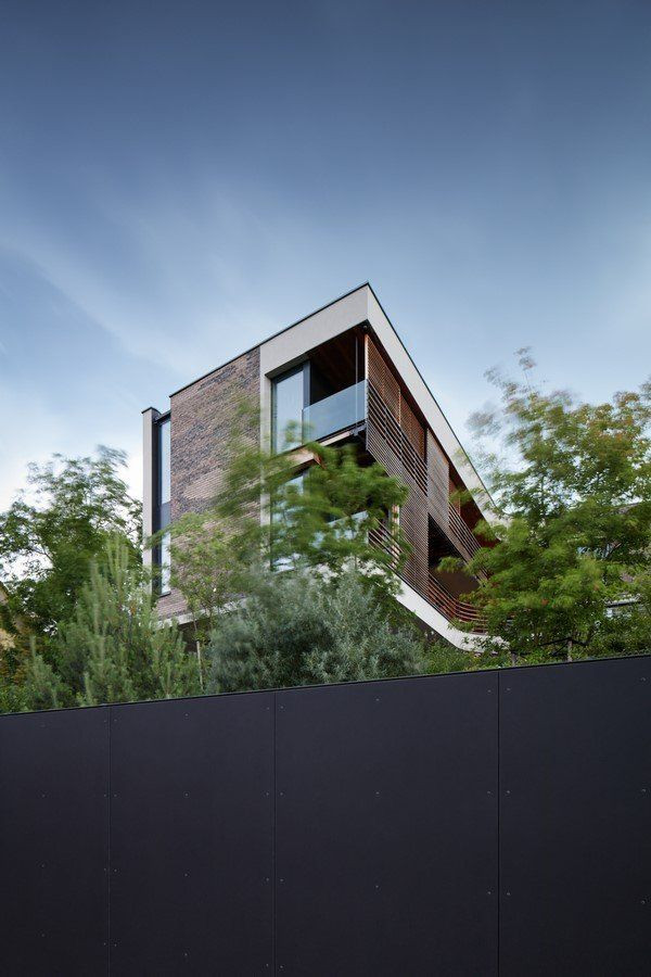 Vila zasazená do svahu v Podolí si pohrává s cihlovou mozaikou