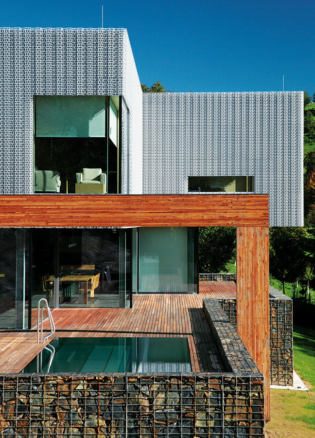 Ze svažitého terénu Beskyd u Valašského Meziříčí vystupuje rodinná vila z dílny místního ateliéru TREF–Architekti, jejímž předobrazem se stal trochu překvapivě dřevěný evangelický kostelík z konce 18. století nacházející se nedaleko vily. Architekti se inspirovali jeho dualitou exteriéru a vnitřních prostor, kterou převedli do jazyka současné architektury. Vznikla tak pasivní dřevostavba kombinující přírodní materiály s technicistní obálkou z perforovaného trapézového plechu.