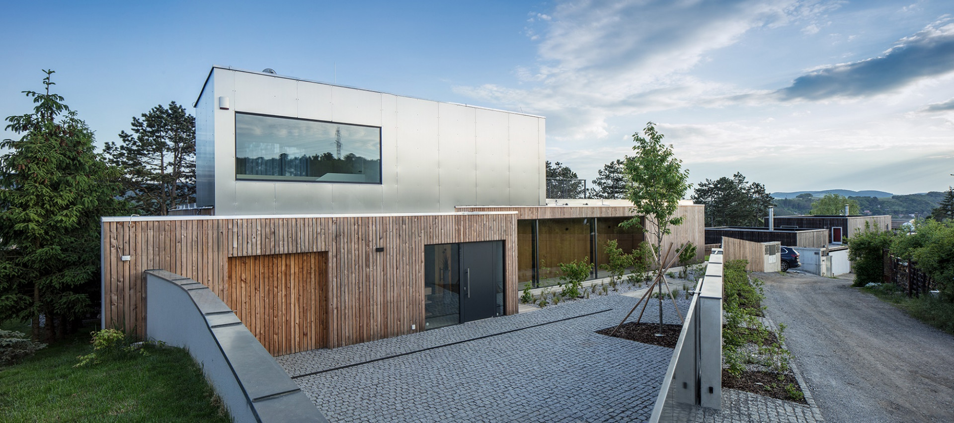 Vila, kterou navrhl pražský ateliér Majo architekti, těží ze svého postavení na vyvýšeném skalním hřbetu. Prohnutá stavba ve tvaru bumerangu nabízí svým majitelům velkou krytou terasu, ze které se otevírají krásné výhledy na okolní krajinu. Vila sestává ze dvou křídel – jedno je určeno jako noční a nachází se zde ložnice, druhé pak obsahuje otevřený obývací pokoj. Realizace využívá zejména přírodní materiály jako třeba modřínové dřevo, kterým je obložena fasáda. Díky velkým proskleným plochám dochází k propojení interiéru s exteriérem.