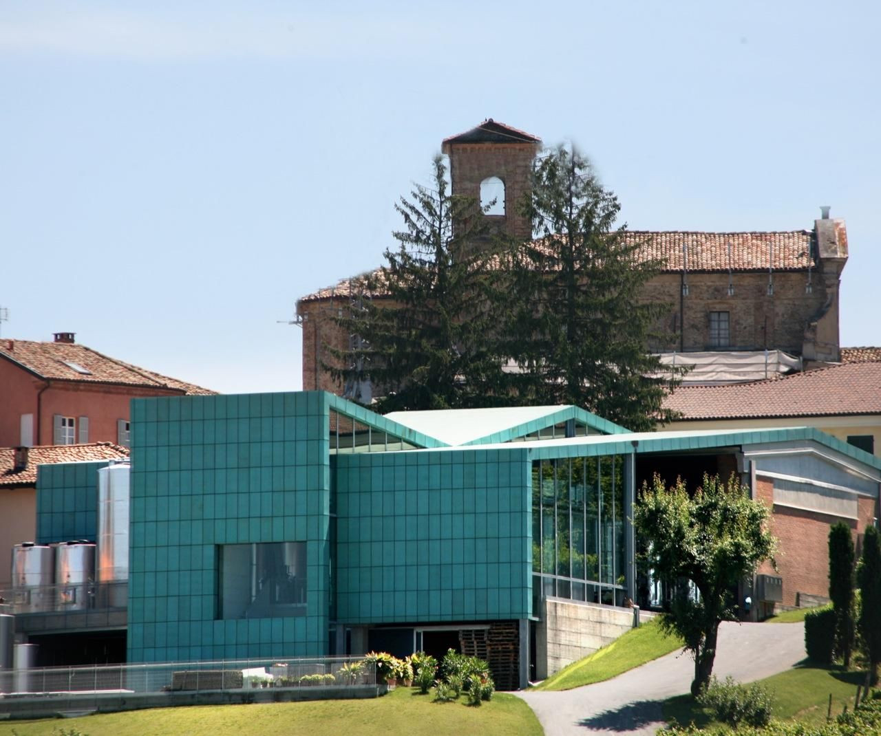 BD architekti věnovali při navrhování budov zvláštní pozornost tomu, jak se projeví při pohledu z údolí. Cantina je upravena jako "spojující" objekt, který patří do dvou světů: mezi spojené a neutrálně barevné objemy a povrchy centra malého města, a také mezi dlouhé řady zeleného vína, v němž se architekti snažili chromaticky "rozpustit" stěny, kryté patinovanou mědí.