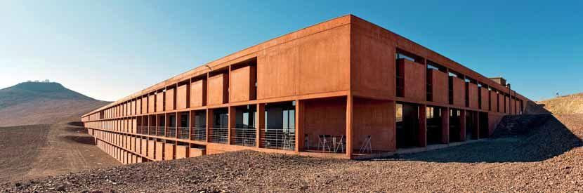Článek popisuje důvody výstavby horského hotelu v sedle pod vrcholem Cerro Paranal v severní časti chilské pouště Atacama. Jsou vysvětleny i důvody, proč byl jako hlavní konstrukční materiál pro stavbu zvolen červenými pigmenty zabarvený beton.