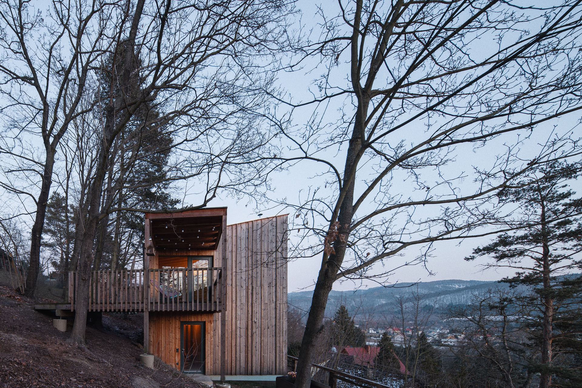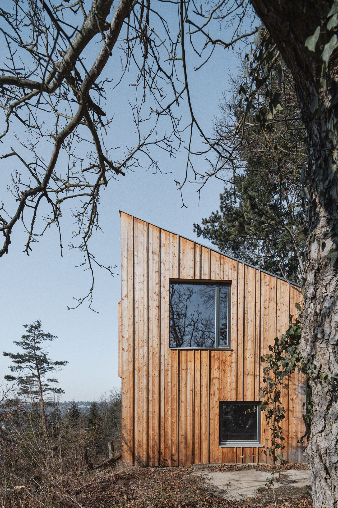 Dům Vlaštovka ateliéru Sodomka Sodomková Architekti se k okolí staví s respektem a jejich dům si zachoval něco chatařského – svým výrazem i tím, že zapadá do okolní přírody. „Je umístěný na jižným svahu v horní části, kde jsou nejlepší výhledy. Je zde také dostatečné soukromí a vzrostlé stromy, které v létě zajišťují příjemné mikroklima. Hlavní obytný prostor domu je umístěn netradičně v horním podlaží,“ vysvětlují Šárka Sodomková a Marek Sodomka, autoři projektu.