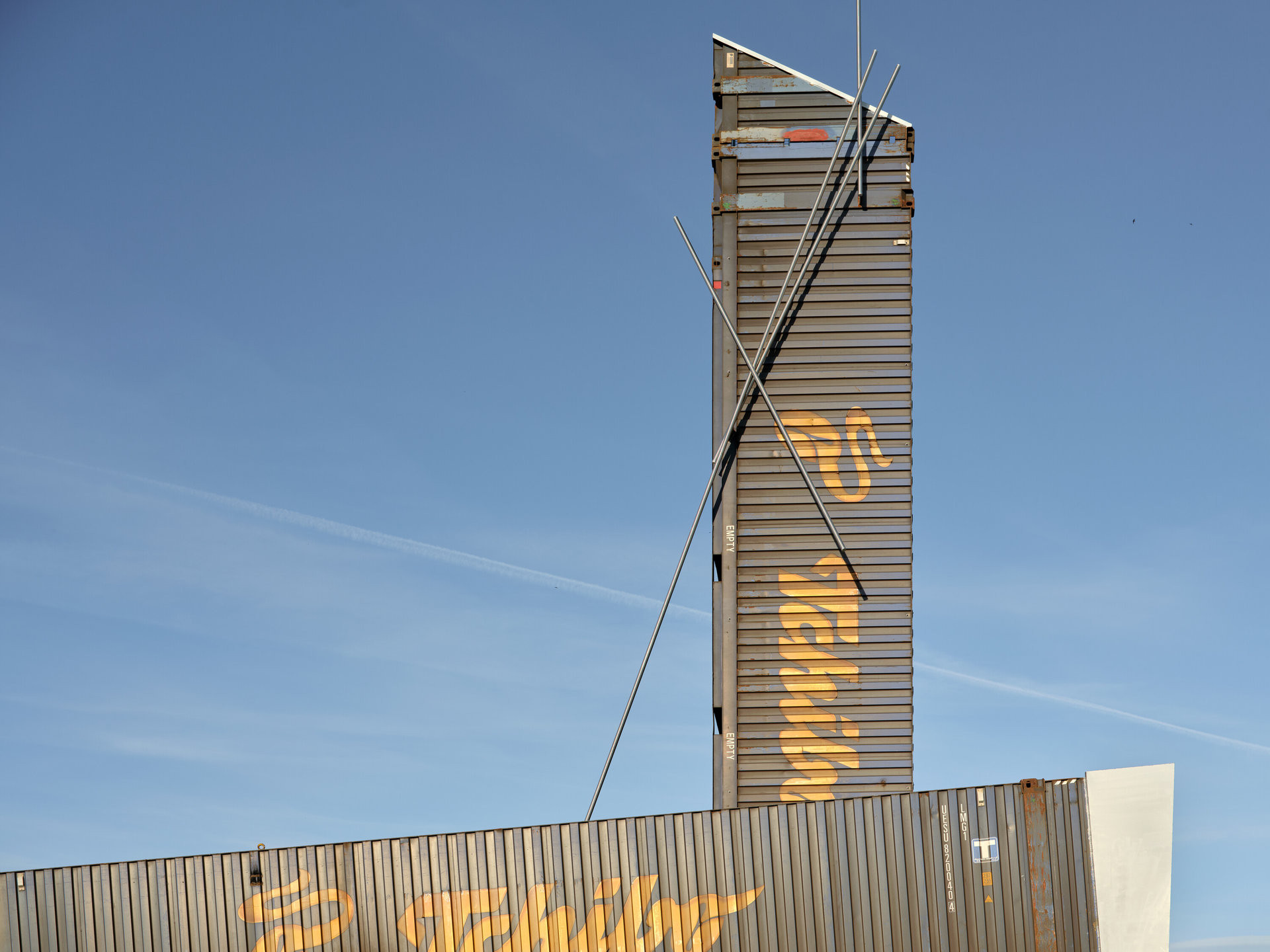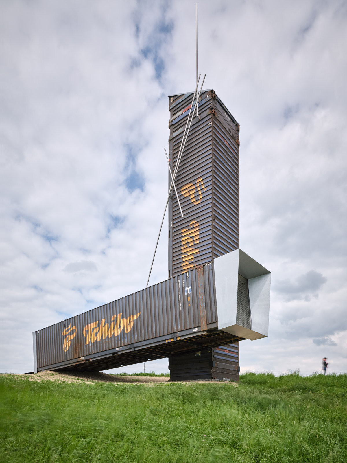 Další myšlenkou za instalací byla recyklace – kontejnery skutečně původně brázdily moře, dosloužily a teď dostaly nový život v jiném kontextu. Až přestanou sloužit jako rozhledna, měly by se posunout dál, místo by mělo zůstat v původním stavu. Tuhle myšlenku však trochu kazí masivní betonové základy.