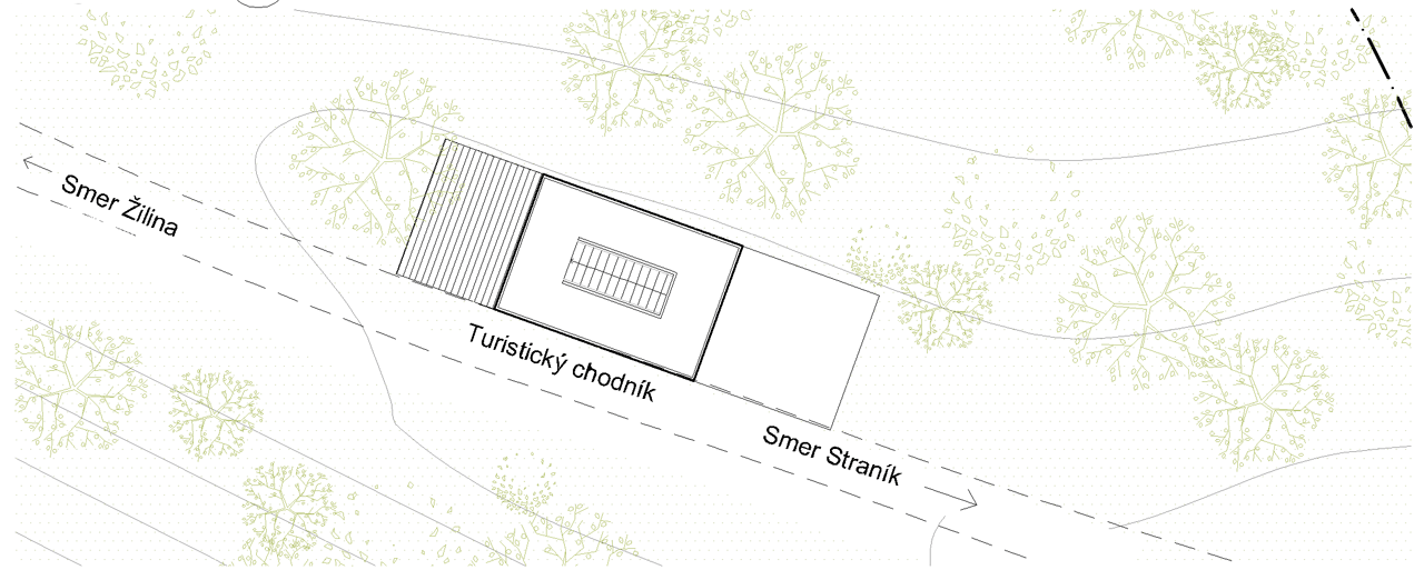 Architektonické tvarové a výrazové riešenie stavby je v jednoduchej geometrickej forme kvádra s obĺžnikovým pôdorysom. Samotný objekt je umiestnený vedľa turistického chodníka s orientáciou dlhšej strany vyhliadkovej plošiny na panorámu mesta Žilina.