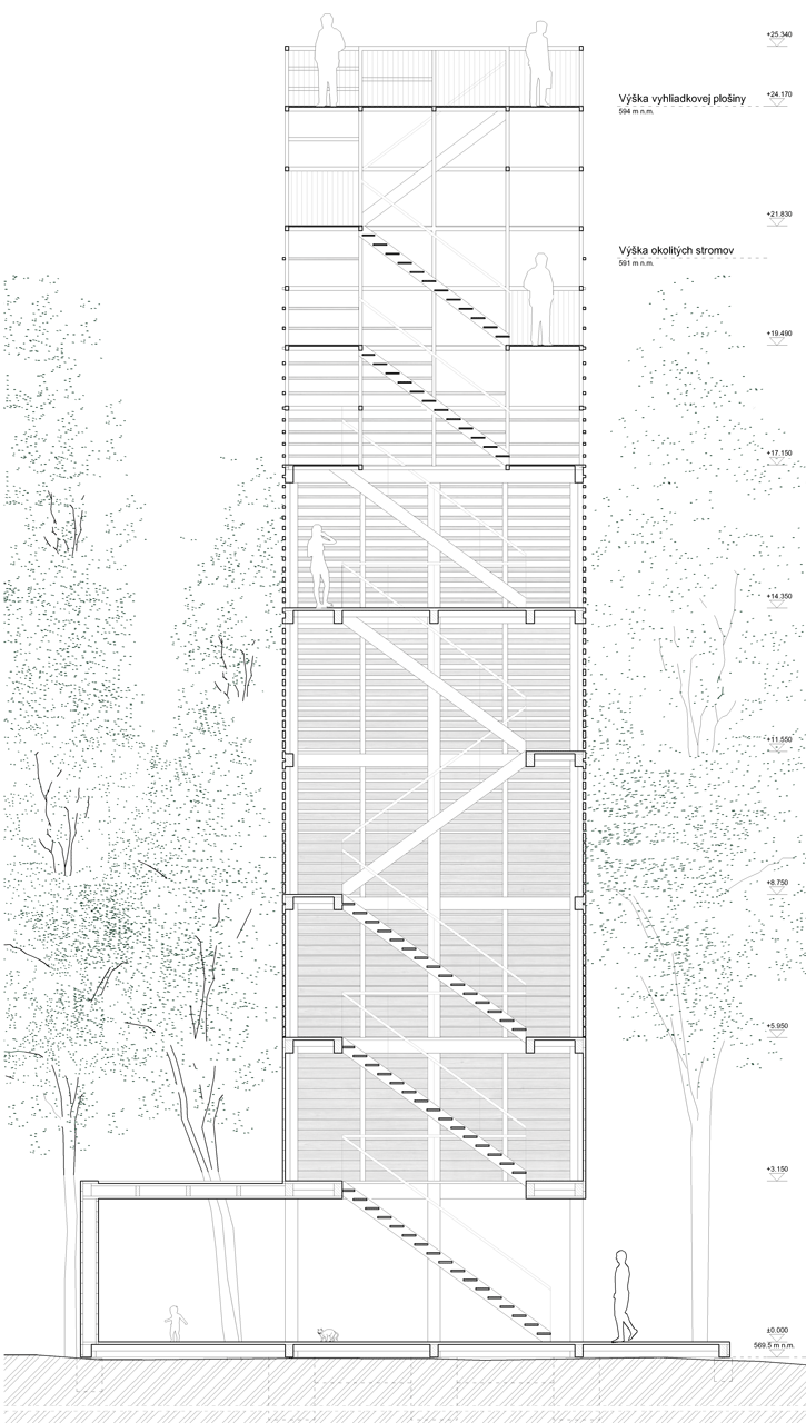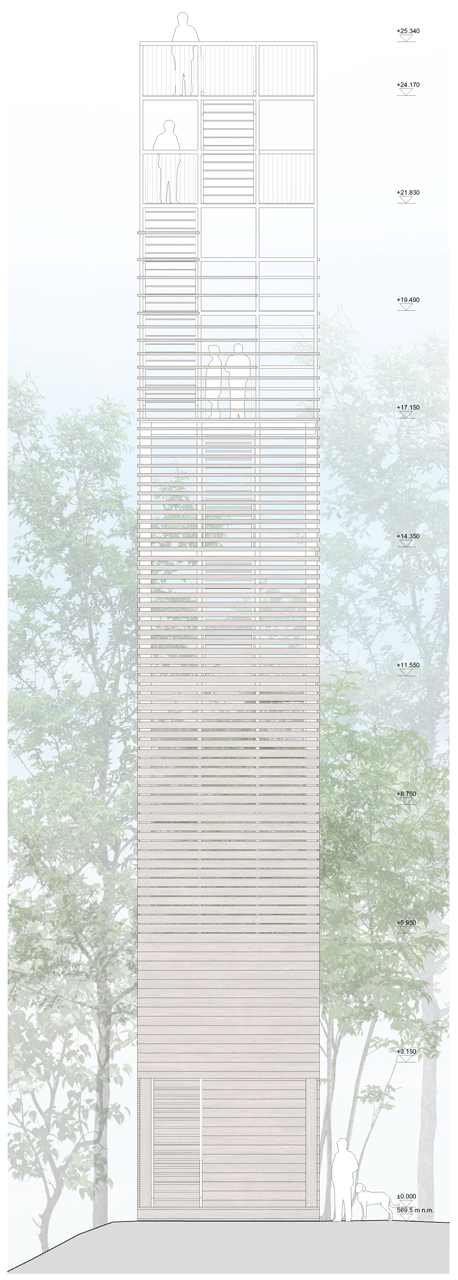 Vítězný návrh má dvě materiálové tváře – dřevěnou a ocelovou. Na tu první narazíte, půjdete-li po hřebenové turistické cestě, obklopeni lesem. Zato ta druhá, ke které teprve musíte vystoupat, ta se blíží nebi. O realizaci ještě bude rozhodovat zadavatel soutěže, Oblastní organizace cestovního ruchu Malá Fatra.