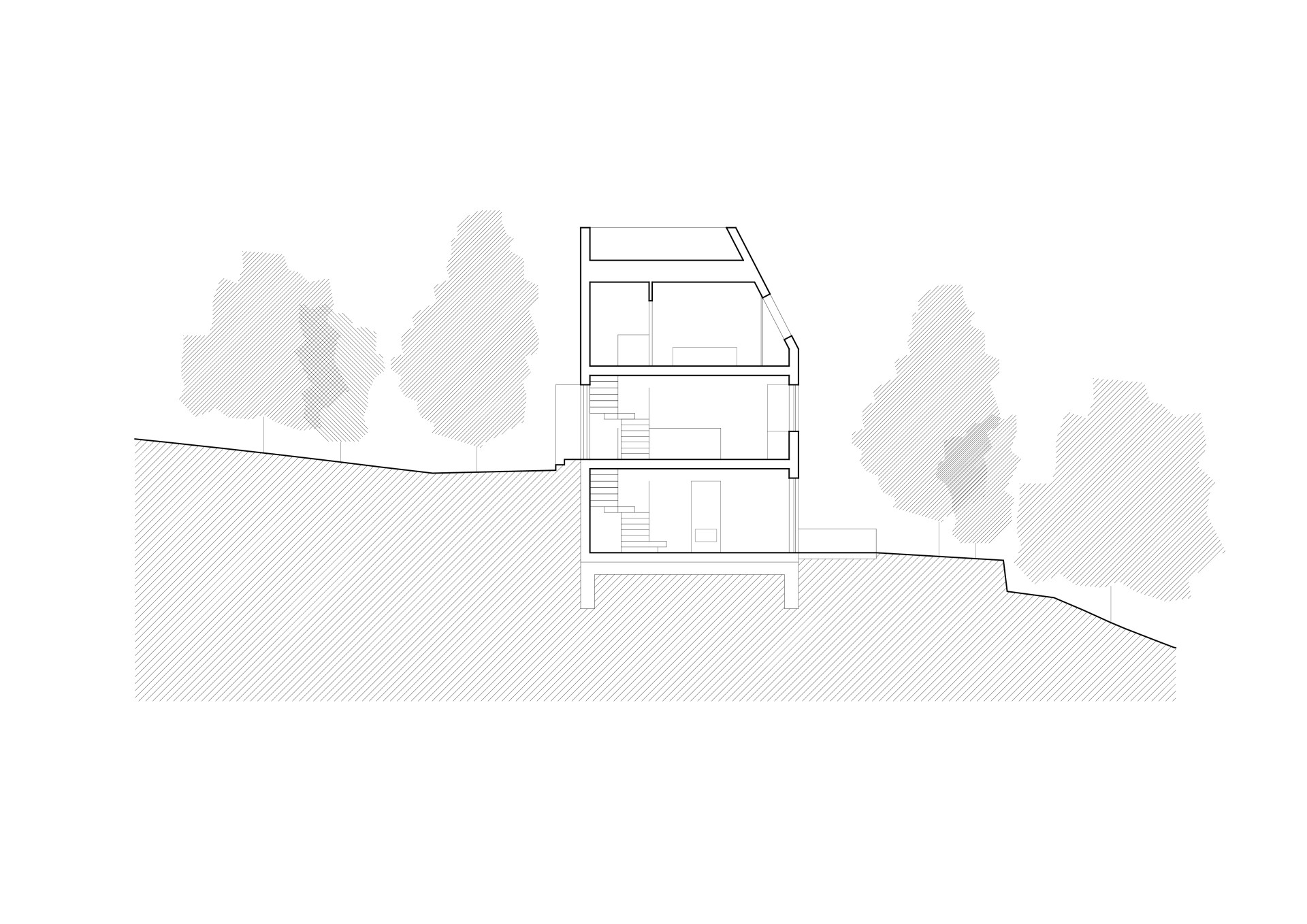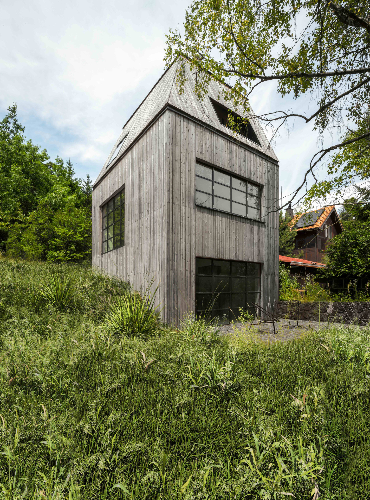 Silný koncept domu pomohl architektům ze studia edit! definovat příkrý svah. Drobnou pitoreskní hmotu vytaženou do výšky zarazili do terénu tak, aby nebyl zásah člověka v místě téměř patrný.
