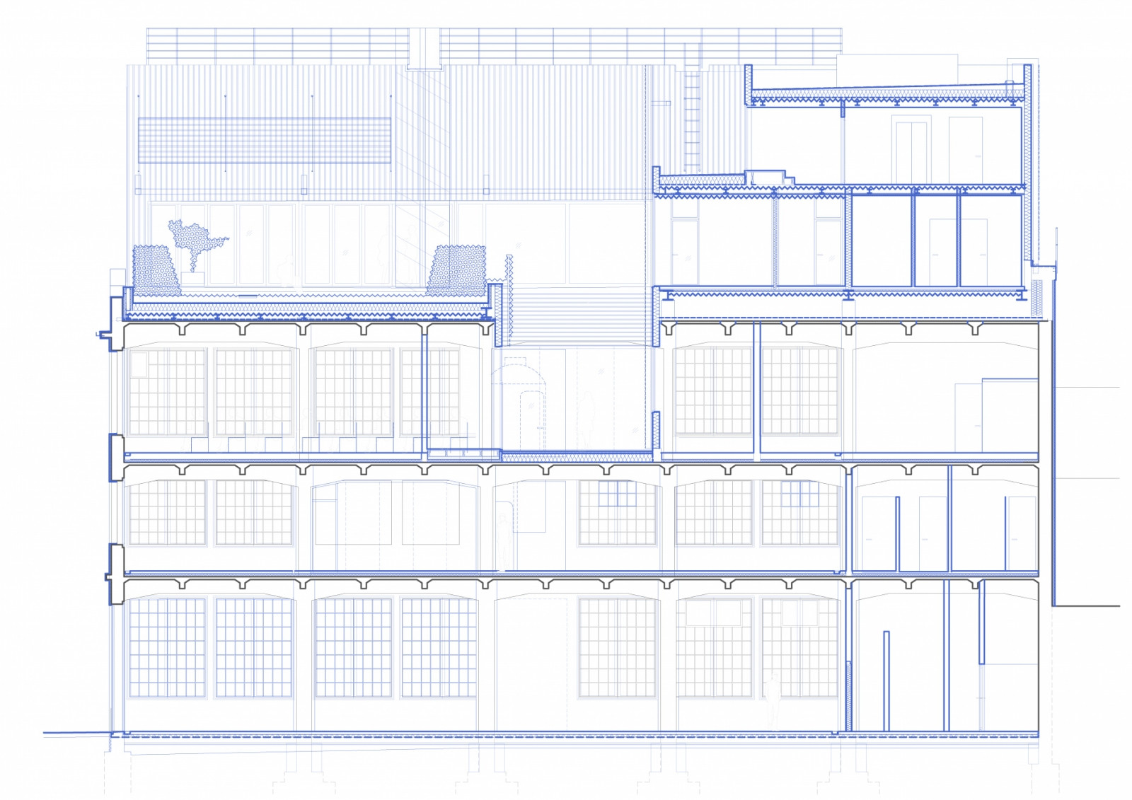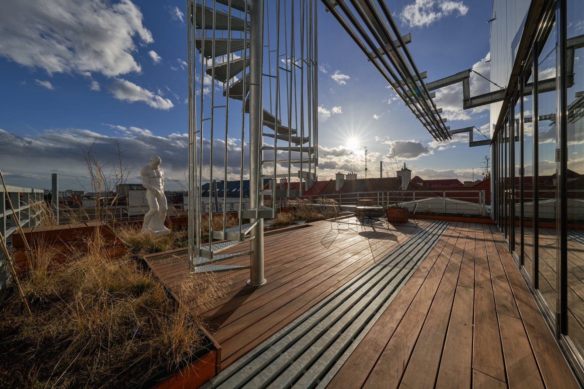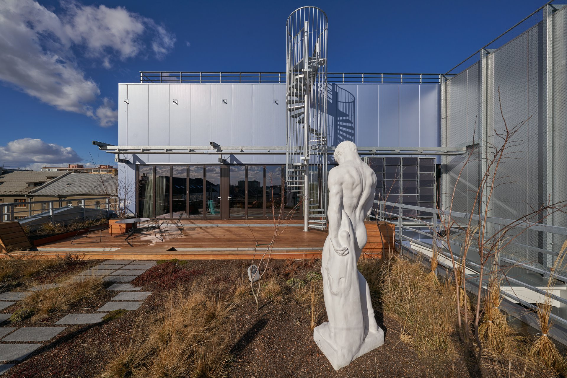 Budova dnešního Telegraphu má i zcela novou část − ocelovou nástavbu. Materiálově se sice odlišuje od omítnutých fasád původní stavby, navazuje však na jejího průmyslového ducha. V nástavbě se nachází loft neboli „byt milovníka umění“. Trvale v něm nikdo nebydlí, slouží k pronájmu – můžete se zde ubytovat na pár nocí, nebo si třeba nechat uspořádat večírek. Jelikož nástavba nepokryla celou plochu střechy původní budovy, vznikl zde prostor pro velkorysou terasu a zahradu s výhledem na město. „Loft v nástavbě je bytem pro milovníka umění, odkazuje na salon měšťanských bytů konce 19. století, tvarem je to ale jednoduchá ocelová stavba jako při rozšíření továrního provozu,“ vysvětlují architekti.