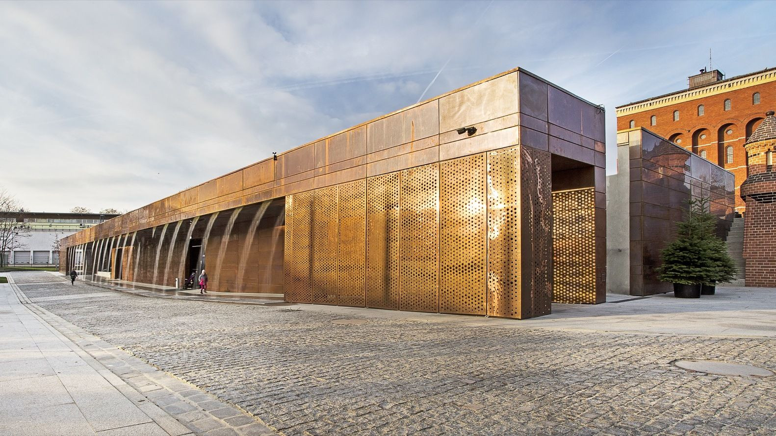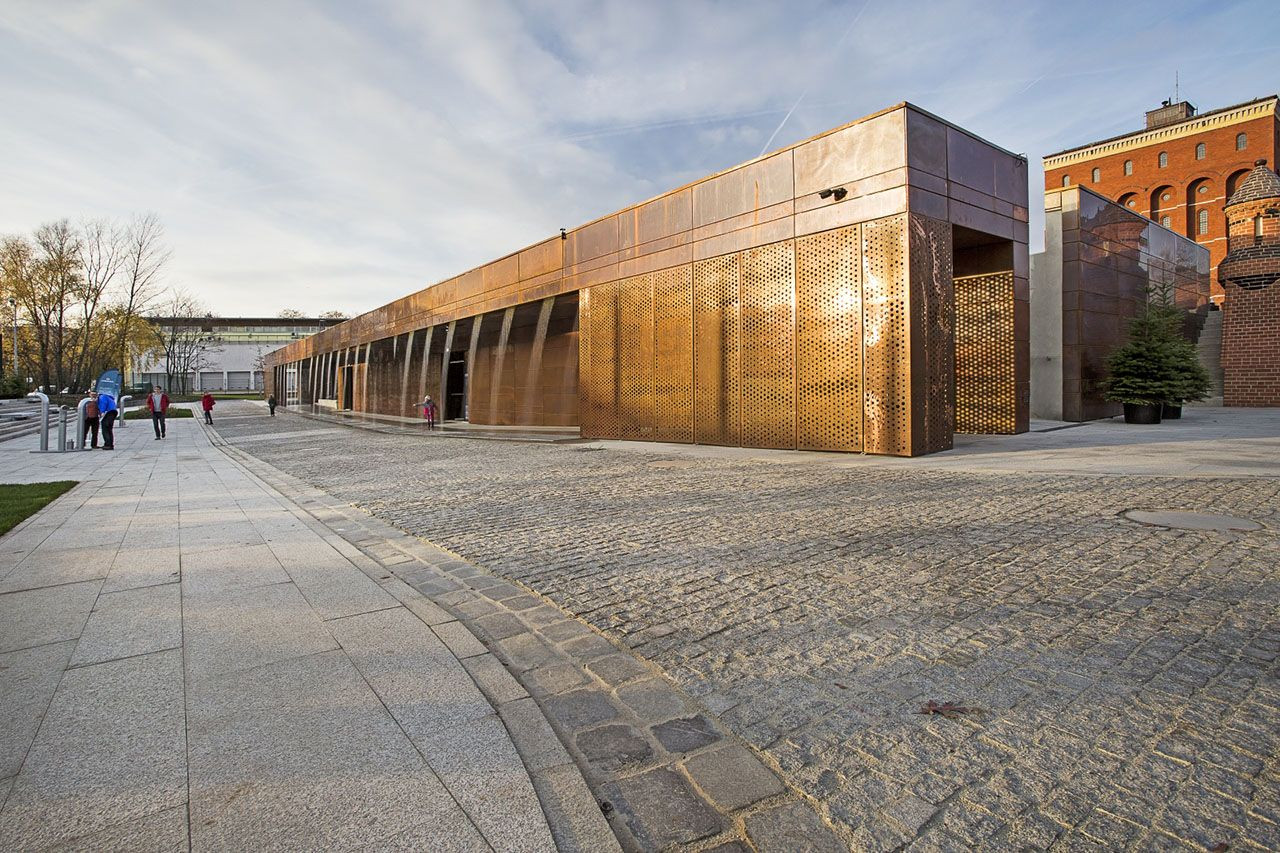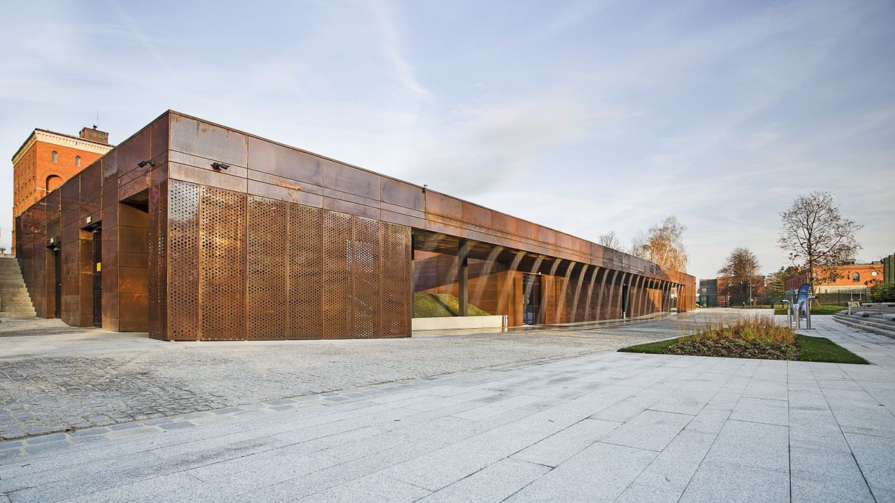 Fasády, měděné obklady a vodní tiskárnu navrhli architekti: Maksymilian Majoch, Magdalena Piweková, Łukasz Markiewicz a Karol Ornatowski z Architecture Studio ART FM.