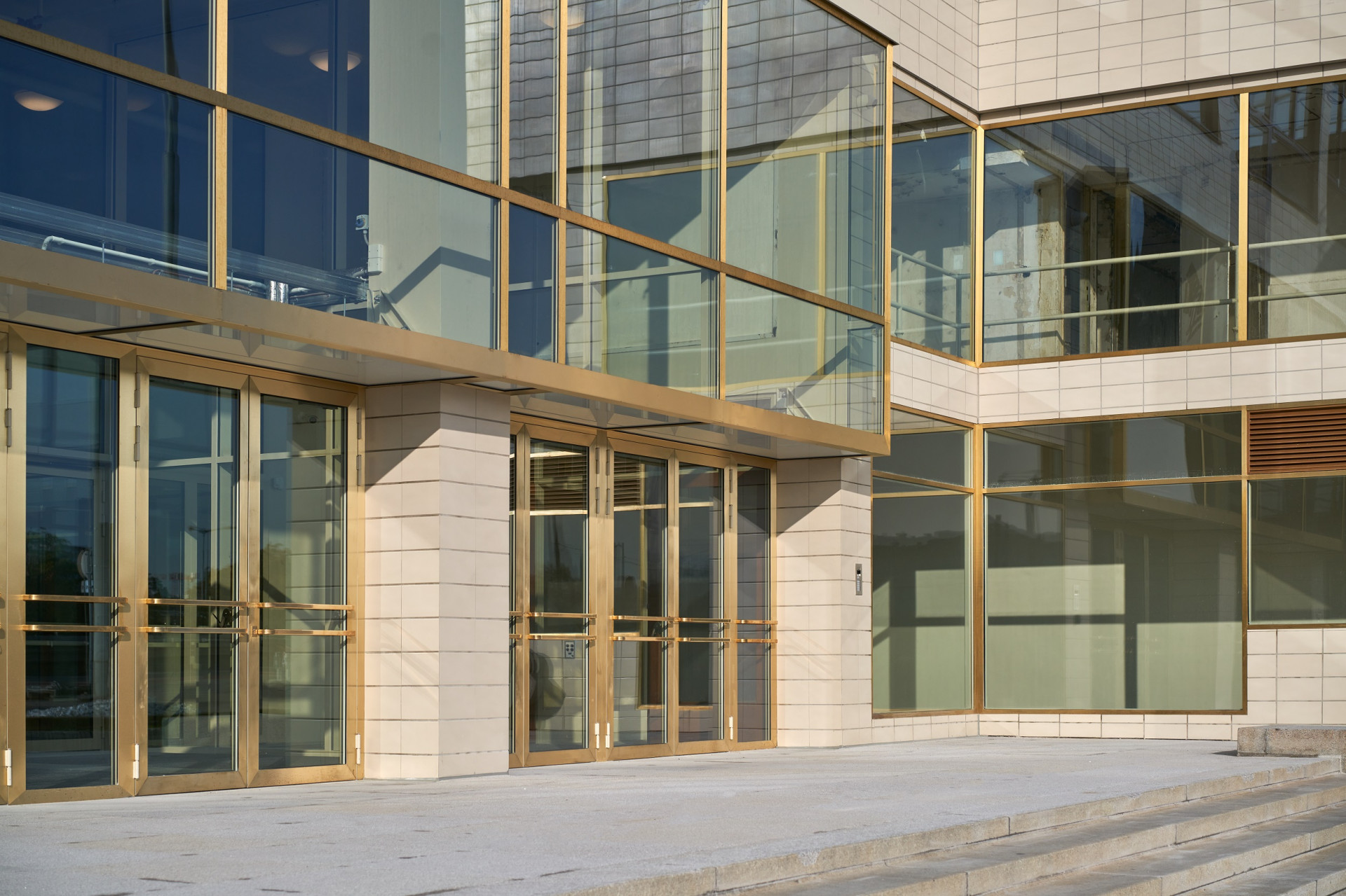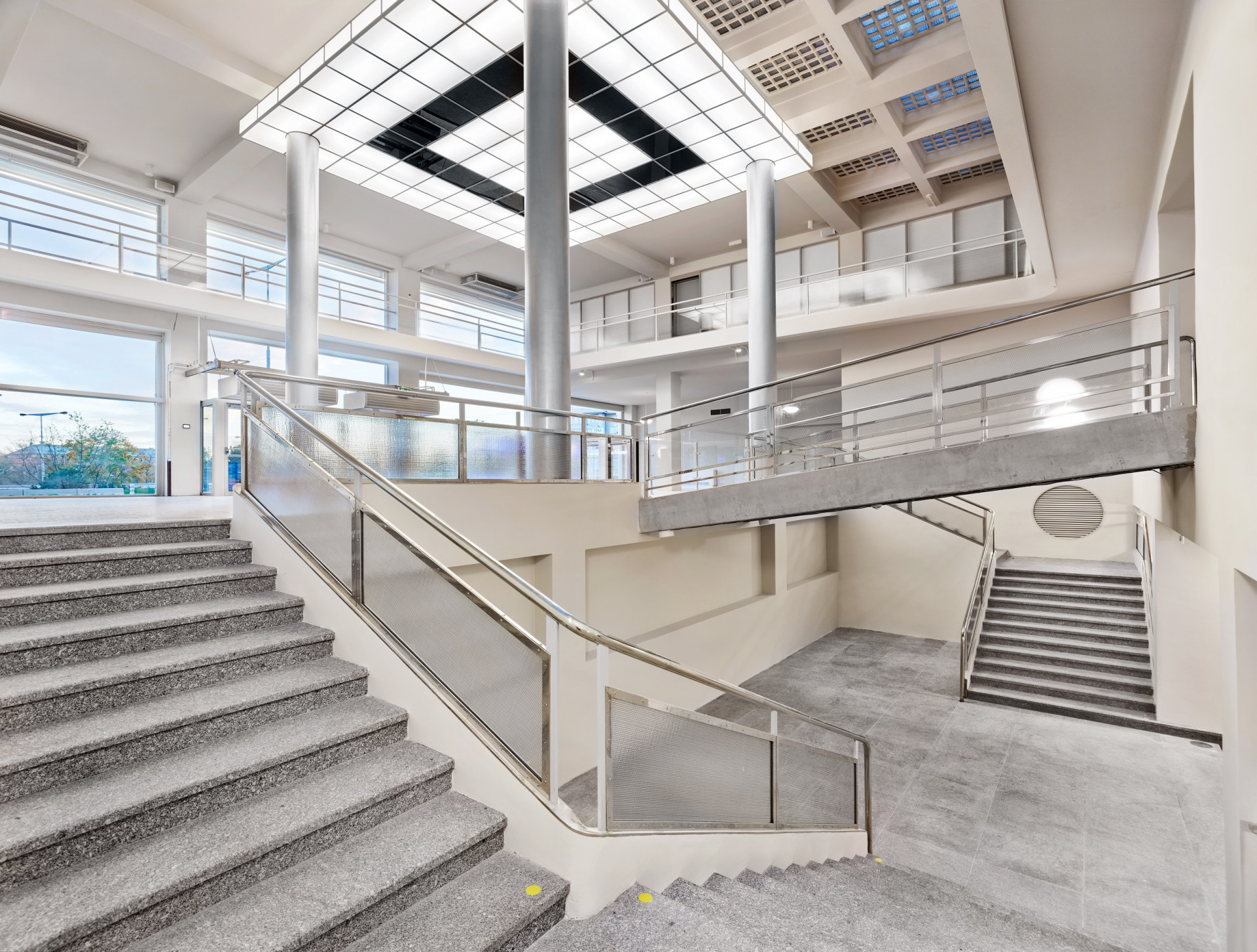 Původní prvky, které bylo možné zachovat, se dočkaly restaurátorské obnovy, jiné byly doplněny. Například okna byla nahrazena dřevěnými a ocelovými kopiemi, nový je i keramický obklad. Rozsáhlé sklobetonové zastřešení dvoran zůstalo. „Zbudováním nových prosklených střech nad původními sklobetonovými, byly současně značně vylepšeny tepelně-technické vlastnosti obálky budovy,“ vysvětluje Marek Tichý.