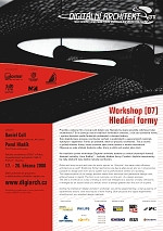 Pravidla a zákony řídí a tvarují svět kolem nás. Neměla by stejná pravidla ovlivňovat také architekturu? Ta se zbavuje svých tradičních formálních omezení, a tak lze navrhovat formu i systém skutečně podle funkčních požadavků a chování budovy. Tato objektivizace procesu navrhování vychází z analytických a generativních nástrojů, fyzických i digitálních. Forma je výsledek, nikoli cíl procesu navrhování. Tím je vzorec a způsob hledání formy, která vyvstává jako řešení rovnice o mnoha neznámých. Objevuje se jako přidaná hodnota celku, který je větší než součet jeho částí.Foto: eArch Workshop [07] | Hledání formy17. - 20. března 2007Fakulta architektury ČVUT v PrazeJugoslávských partyzánů 1580/3Praha 6 - Dejvice17. – 20. března 2007Rules and laws control and form the world around us. Shouldn’t the same rules influence architecture as well? Traditional formal restrictions are being abandoned and so it is becoming possible to design both form and a system due to performative criteria of a building. This objectivization of the design process stems from analytical and generative design tools, either physical or digital. The form is an outcome, not the aim, of a design process. The aim is a formula or a way of finding a form that emerges as a solution of many unknowns. It emerges as an added value of a whole, which is always greater than the sum of its parts.During the traditional ‘Digital architect’ workshop, we will be experimenting, under guidance of experienced lectors, with techniques of form finding. Both physical and digital experiments should enrich our standard design methods.Máte-li zájem zúčastnit se Workshopu [07] Digitální architekt, zašlete e-mail na adresu digiarch [at] earchitekt.cz">digiarch@earchitekt.cz, do subjektu uveďte slovo Workshop[07].LektořiDaniel Coll, London Metropolitan University, AA LondonPavel Hladík, ČVUT Praha, AA LondonSpoluorganizátoři:e-architekt.cz, Fakulta architektury ČVUT v PrazeVe spolupráci:Česká komora architektů, Nadace české architektury, Studentská grantová soutěžHlavní partneři: ArchiCAD 10, Copy General, PHILIPSPartneři: SOMFYProjekt podpořili: NC Computers, PROSTORMediální partneři: Computer Design, era21, KONSTRUKCE, Radio1Internetoví partneři: AVC, student.cvut.czWorkshop je organizován v rámci grantového projektu:GAČR 103/06/1802