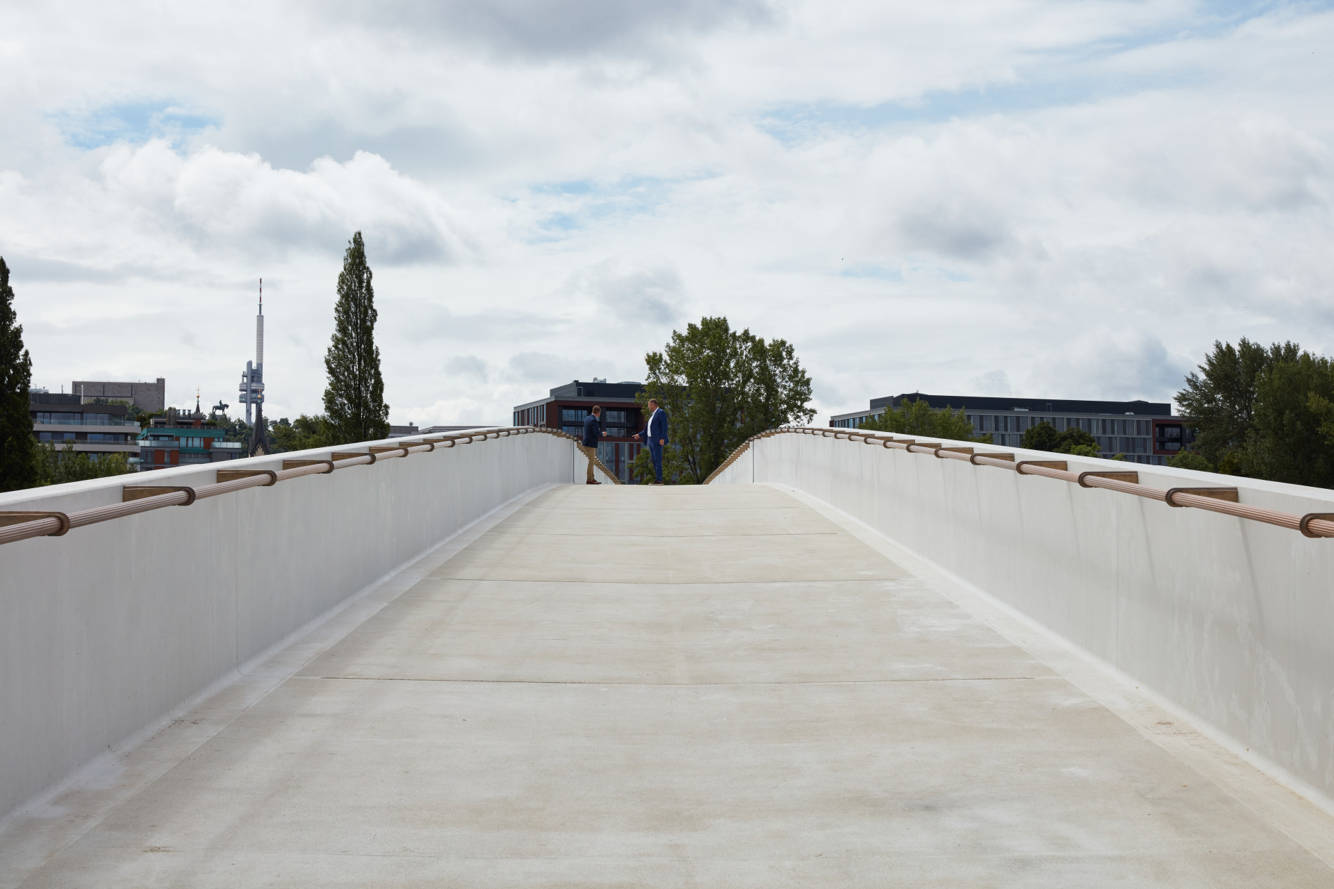 Minimalistická konstrukce je zhotovena z ultravysokopevnostního neboli ultravysokohodnotného betonu (UHPC – ultra-high performance concrete), který mimo jiné umožnil i snížení počtu podpor. Celá hmota lávky je tak skutečně její nejmenší možná masa. Tím se týmu autorů podařilo vytvořit ladnou subtilní konstrukci.