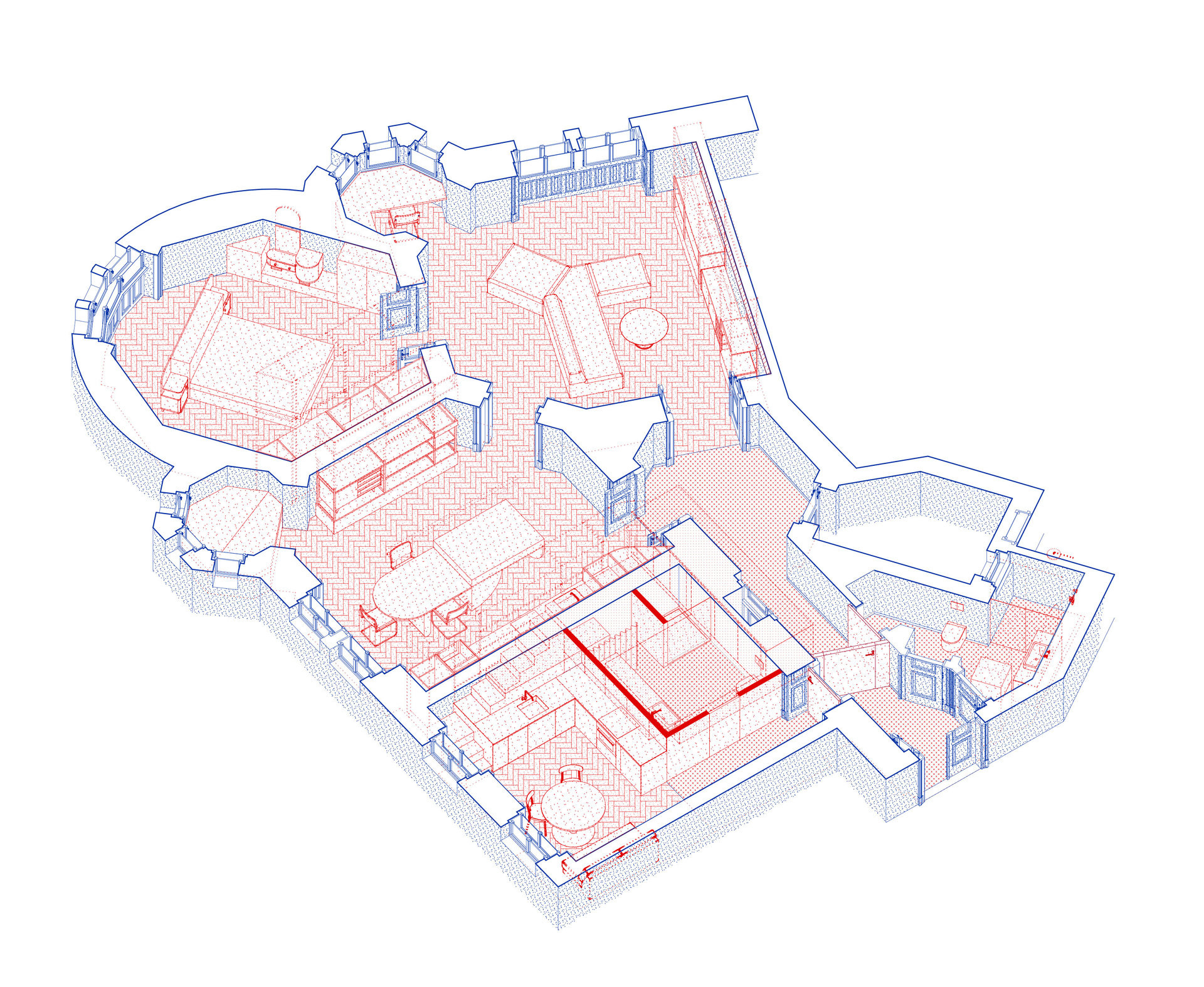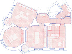 „Při naší první návštěvě byl prostor pod vrstvami koberců, tapet, zaprášených záclon. Dispozicí jsme postupovali úzkými uličkami z vystavěného nábytku, přes kuchyňskou sestavu z počátku 20. let, Jiroutkovy péřáky, až po křesla z Ikey. Každé dveře otevíraly pohled do přeplněných místností, původní funkce a určení se ztrácelo,“ popisuje architektka Andrea Sobotková, jak s kolegy z ateliéru Facha architekti přišli na první návštěvu.