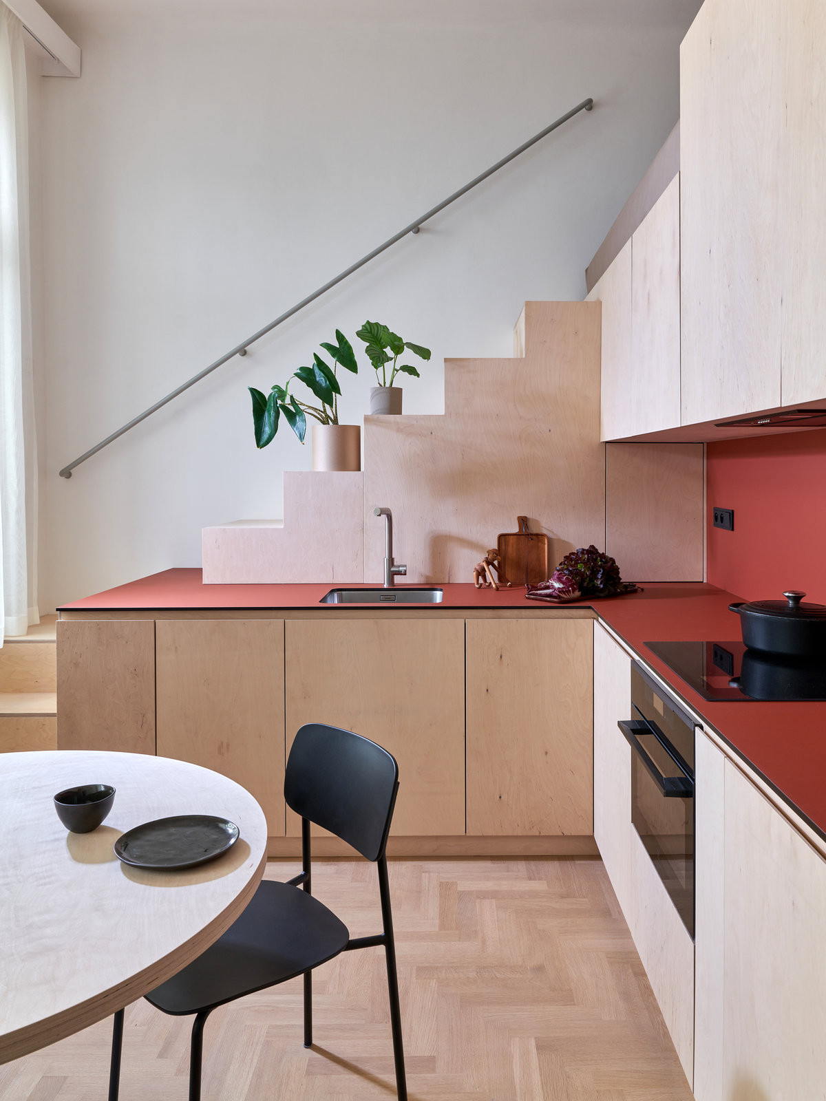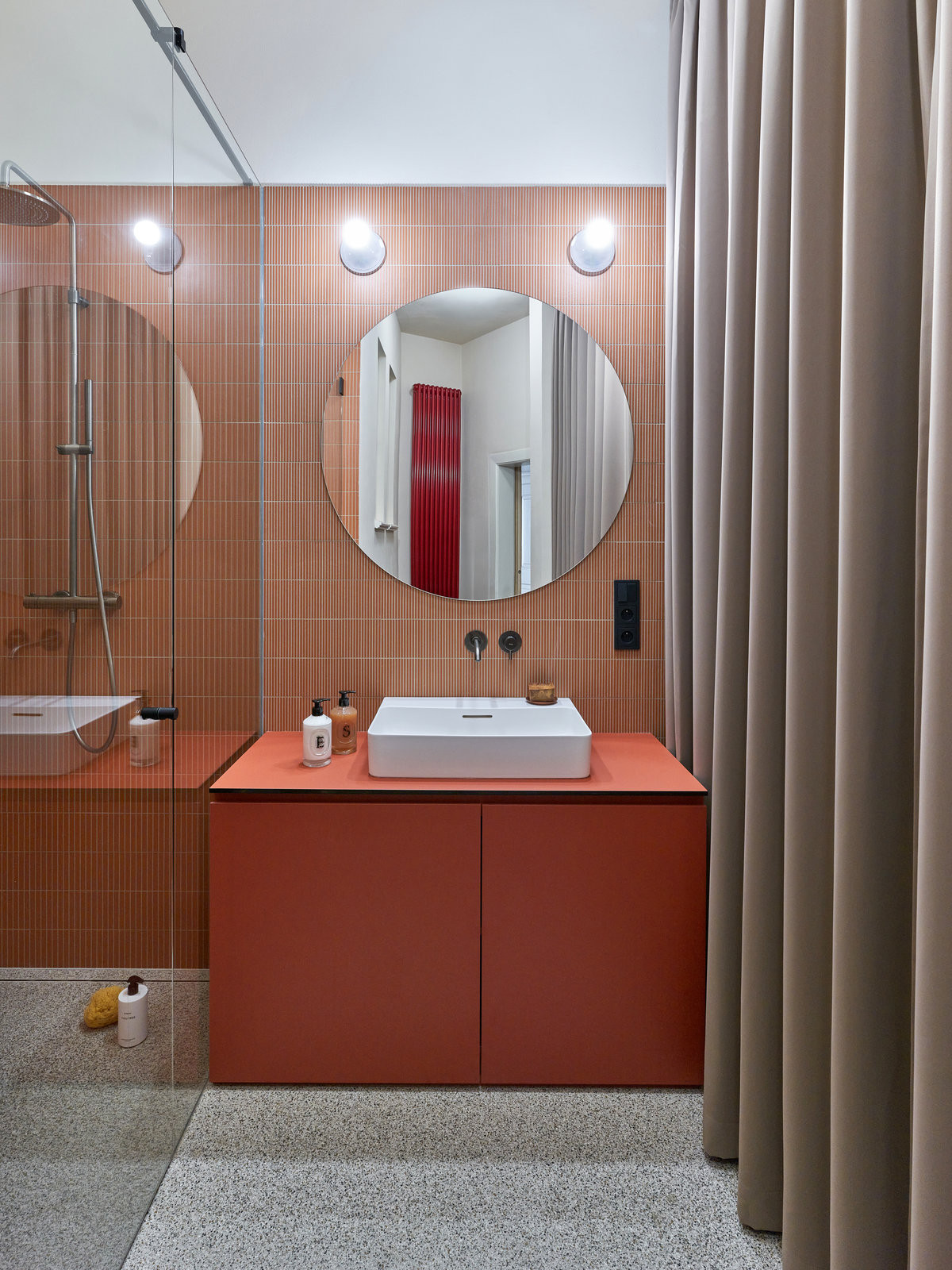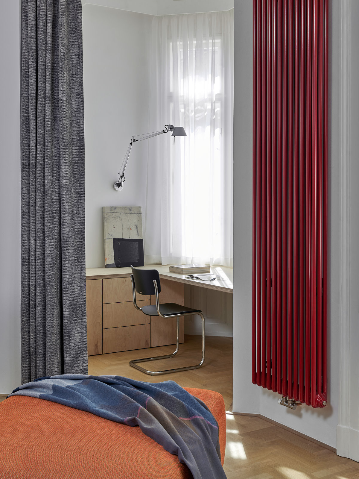 Výsledkem je harmonické prostředí, kde se materiály, barvy a tvary doplňují a prolínají a každý průhled je jako výtvarné dílo. „Někdy drzé, někdy jemné, vždycky výrazné. Staré a nové vedle sebe staví v hravém napětí,“ shrnují tvůrci z Facha architekti.