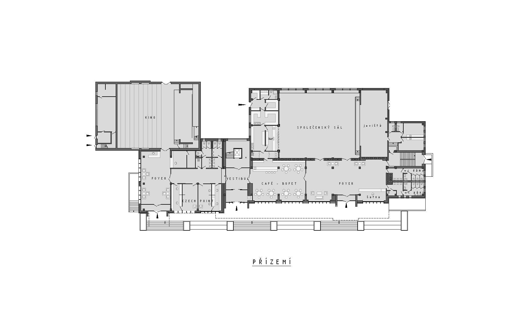 Původní budovu kulturního domu tvořil dvoupodlažní podsklepený objekt, který vznikal během dvou etap. Nejdříve tu totiž vznikl kulturní dům a až později se k němu připojilo také kino. Tato skutečnost pravděpodobně vedla k tomu, že budovy nikdy nebyly provozně propojeny, v místě jejich styku fungovala kuchyň restaurace. Jedním z hlavních bodů návrhu tak bylo vytvoření logické funkční i hmotové návaznosti obou budov.