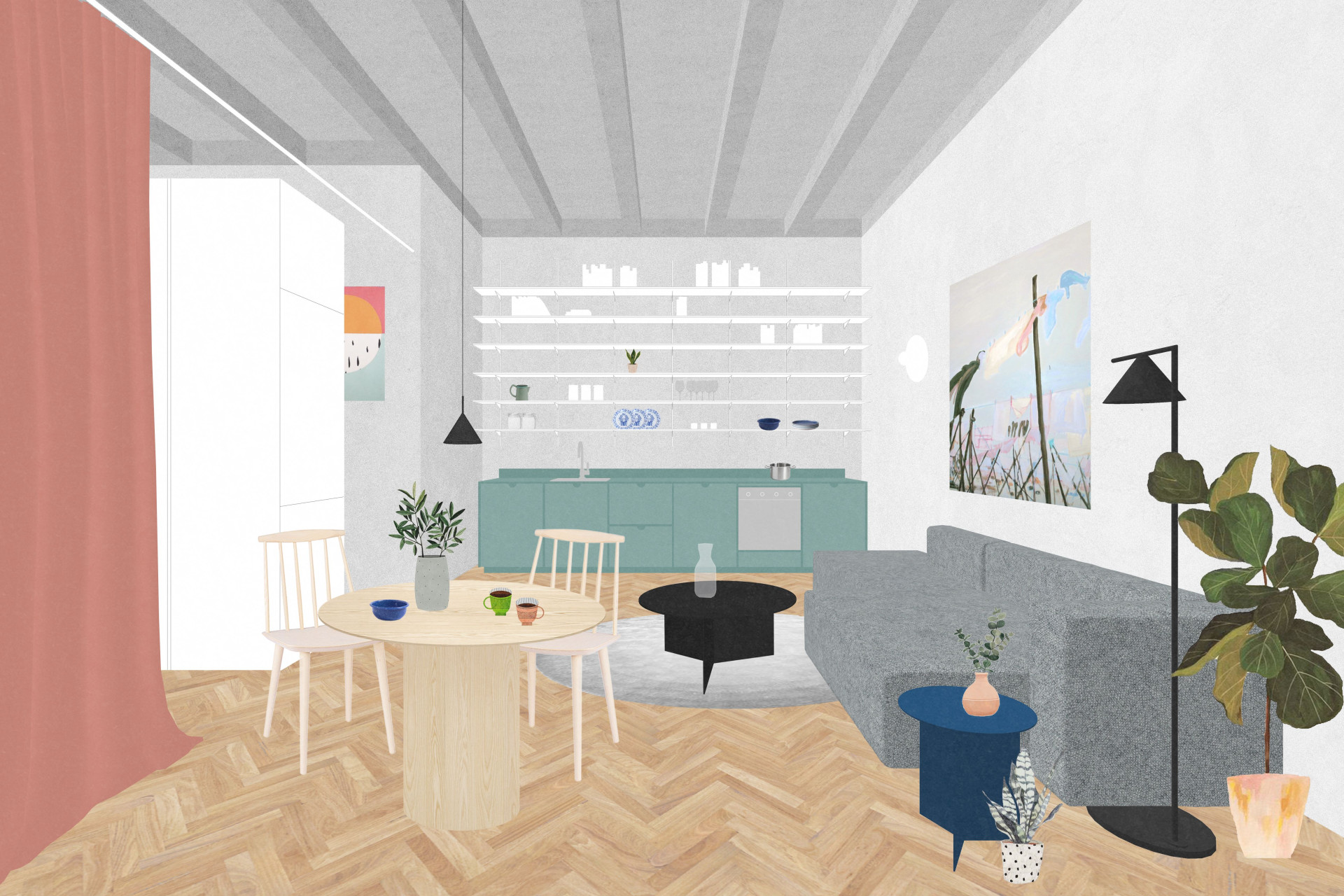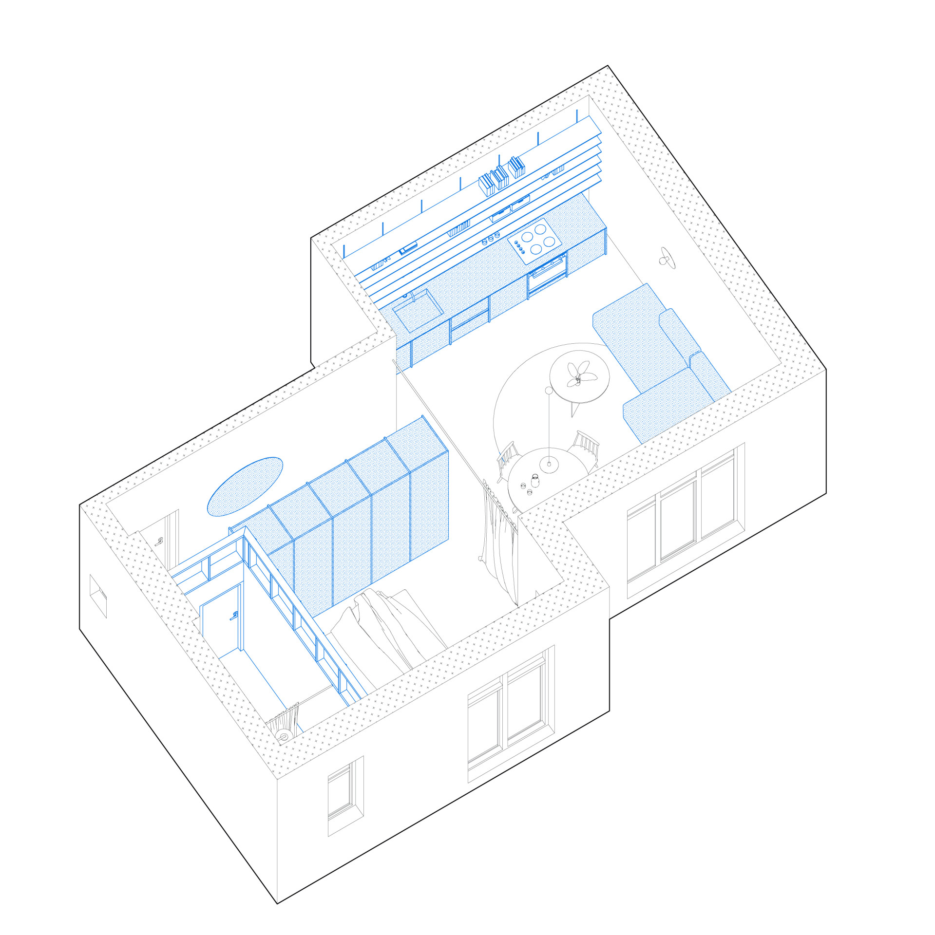 Úkol, který si architekti z ateliéru Grau Architects společně s klientem stanovili, zněl jasně. Interiér „zvětšit“, provzdušnit a prosvětlit. Vcelku logicky se tedy nabízelo všechny vnitřní příčky odstranit a z rozděleného bytu vytvořit jeden souvislý prostor propojující všechny jeho zóny.