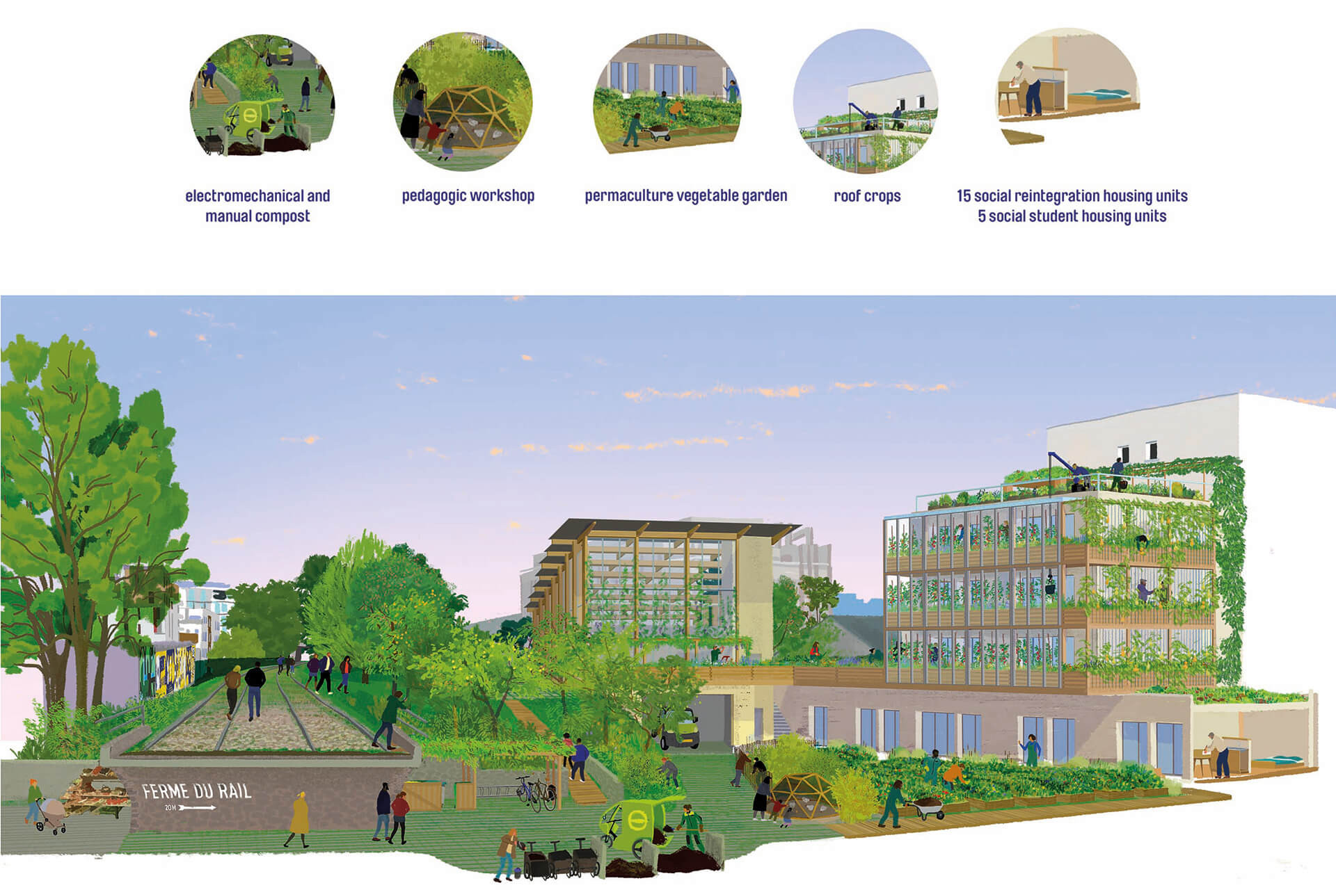 Na místě vysloužilé železnice vznikl inspirativní projekt městské farmy, který vyniká pro stránkách environmentální i sociální udržitelnosti. Využívá recyklované materiály a nabízí ubytování pro sociálně znevýhodněné občany.