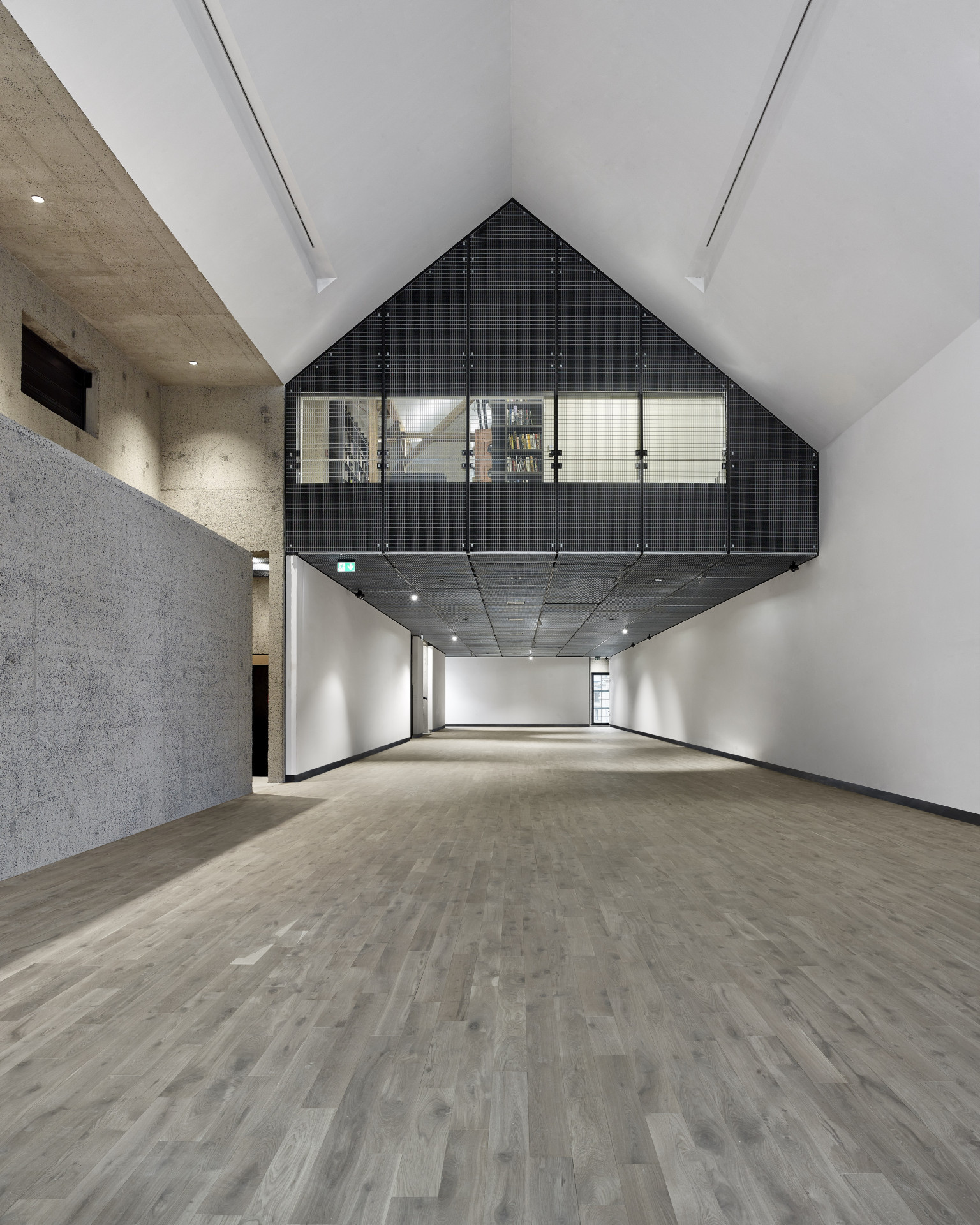 V bývalé Zengerově transformační stanici se dnes nachází celkem tři samostatné galerijní prostory a několik dalších zákoutí, které je možné využívat pro speciální instalace nebo přednášky. Své místo zde našla i restaurace nebo kavárna. Místnosti se přitom zakousávají jedna do druhé a vytváří tak kontinuální prostor, kterému do cesty přichází několik překážek v podobě mezischodišť. Pokud projdete budovu úplně celou, vystřídáte nespočet různých úrovní, což je dáno právě onou snahou reagovat na vnější členění budovy. Důležité však je, že celek nepůsobí vůbec chaoticky a budovou se opravdu dá přirozeně proplout.