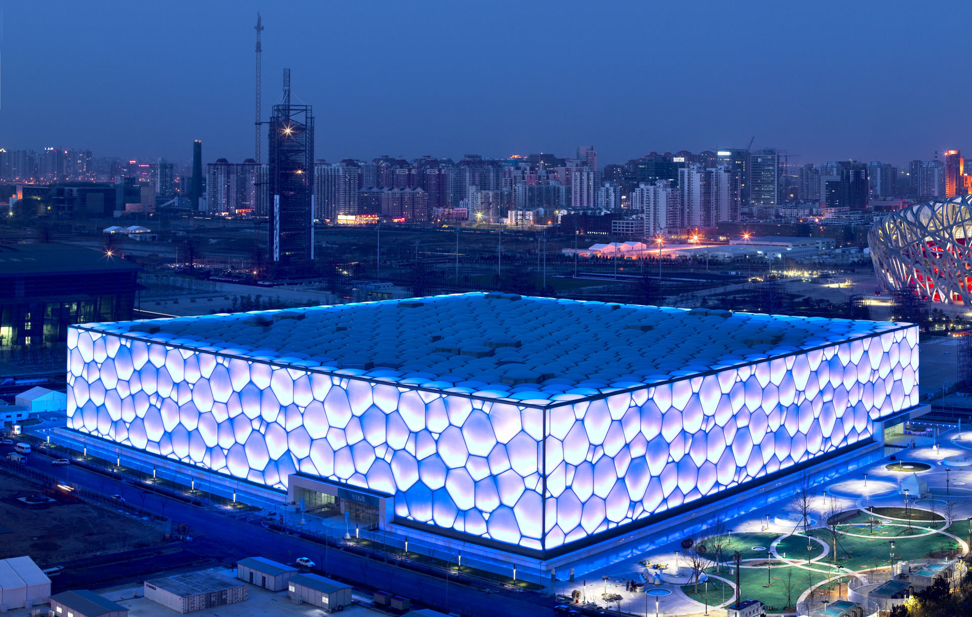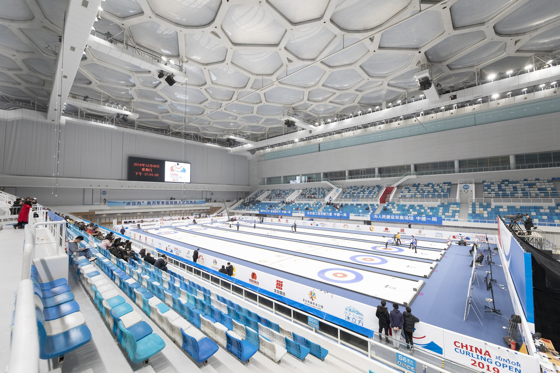Národní plavecké centrum je jedním ze starších sportovišť, které dokáží změnit svůj původní účel. Díky moderním technologiím v něm tak mohou probíhat utkání v curlingu. Budova s podsvícenou fasádou si vysloužila přezdívku „Vodní kostka“, s ohledem na změnu využití během zimních her pak „Ledová kostka“.