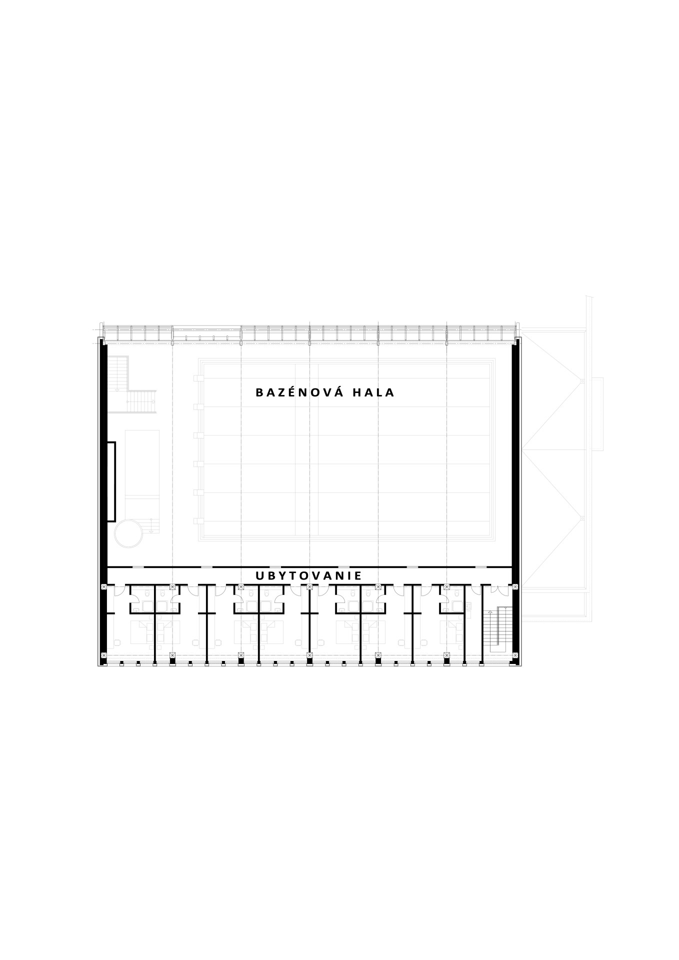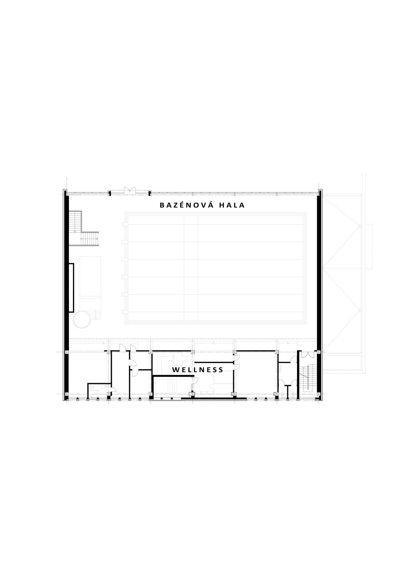 „Konceptem bylo zachování existující hmoty a funkčního uspořádání s důrazem na racionalizaci prostorů, hledání kapacitních a funkčních rezerv , které by se doplnily funkcemi, které by byly v souladu s tou hlavní – využíváním plaveckého bazénu veřejností,“ přibližuje záměr projektu architekt Panda. „Určitá ordinérnost a strohost původní hmoty našla svůj odraz také v nové definici vnitřního uspořádání a řazení funkcí. Zapojení do prostředí tvořícího hranici mezi městem a krajinou je přetavené i do vnějšího vzhledu objektu a použitých materiálů. Dřevo a beton, přírodní a umělé,“ vysvětluje architekt.